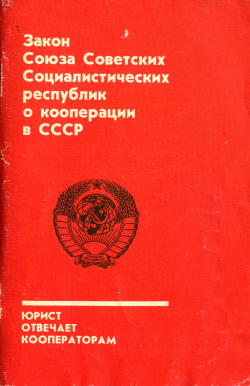 Закон «О кооперации в СССР», принятый 26 мая 1988 года. Он впервые за более чем 60 лет разрешал создавать частные предприятия. Закон призван раскрыть огромные потенциальные возможности кооперации, возрастание ее роли в ускорении социально-экономического развития страны, усилить процесс демократизации хозяйственной жизни, создать условия для вовлечения в кооперативы широких слоев населения, направлен на всемерное использование кооперативных форм для удовлетворения растущих потребностей народного хозяйства и населения в продовольствии, товарах народного потребления, жилище, разнообразной продукции производственно-технического назначения, работах и услугах и т.д.