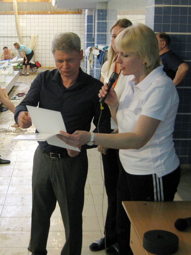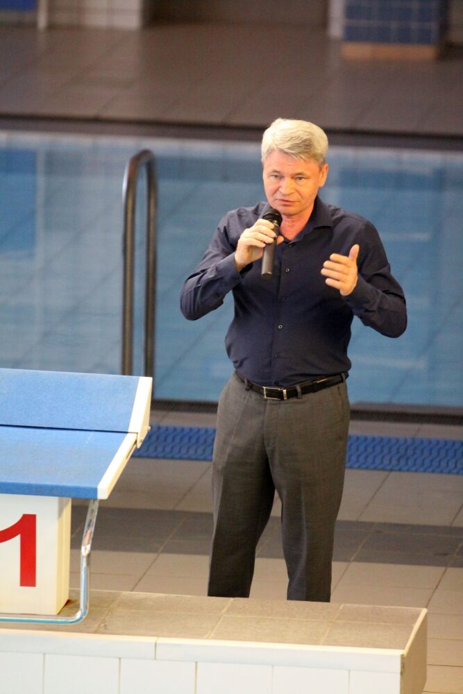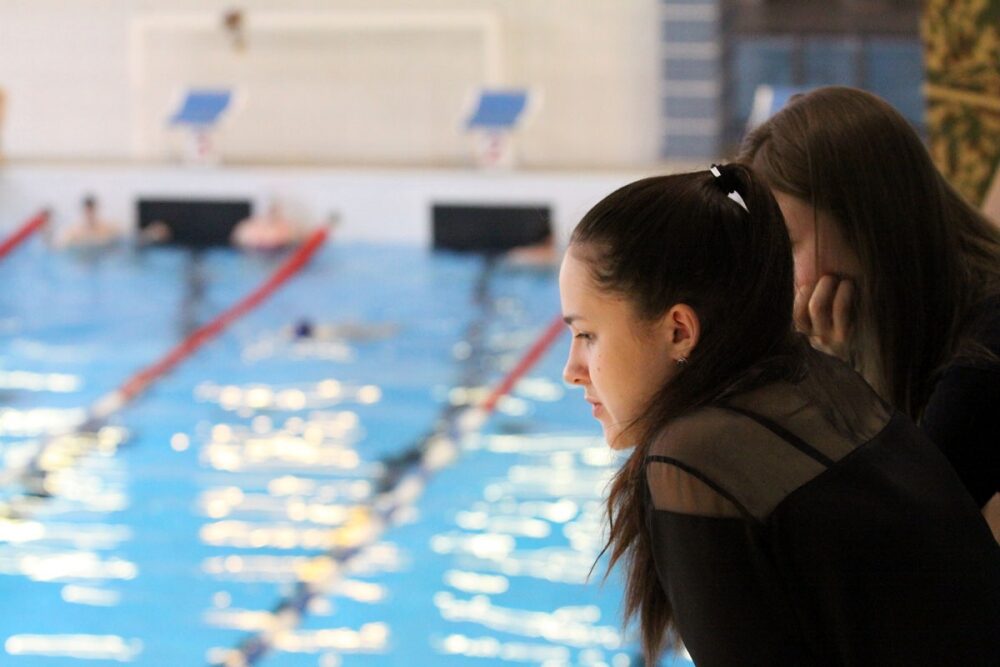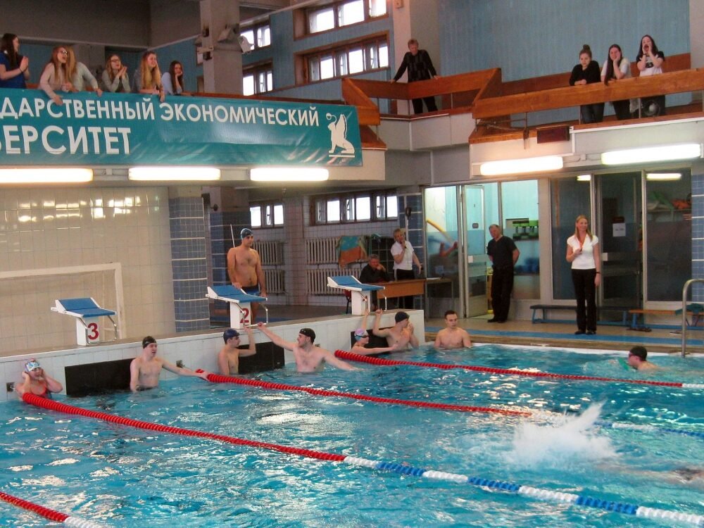 Для демонстрации техники плавания баттерфляем, кролем на спине, брассом и кролем на груди были приглашены члены сборной команды по плаванию СПбГЭУ, тренером которой является Дарья Алексеева. В заплыве на дистанции 100м комплексного плавания приняли участие: мастера спорта — Полина Бороденко, Дмитрий Соколов, Олег Немченко, кандидаты в мастера спорта — Игнат Писарев, Роман Кудрявцев, Татьяна Бережнова, Филипп Гирич, а также перворазрядники — Сергей Шереметьев и Милана Драпенкина.