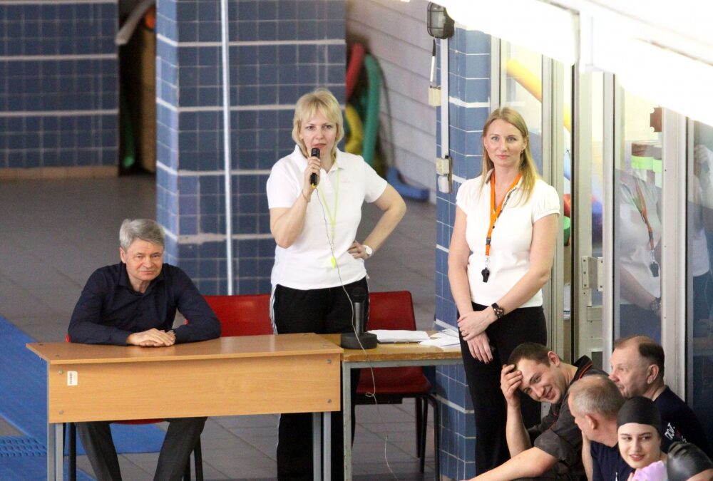 Программу праздника продолжили веселые эстафеты с инвентарем для аквафитнеса (нудлы, ласты, доски), где нужно было проявить не только физические качества, но и смекалку. Организация и проведение эстафет были возложены на Алину Федорову.