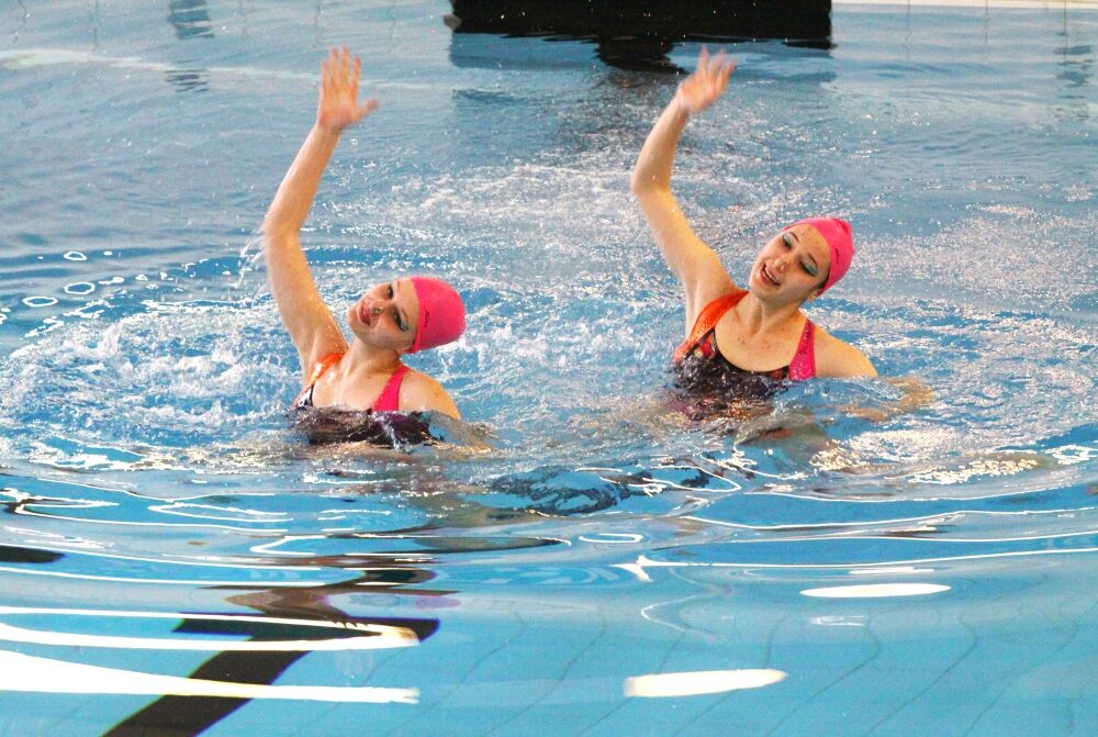Первым выступил дуэт синхронисток, студенток экономического факультета нашего университета. Лидер дуэта — мастер спорта по синхронному плаванию Алиса Фролова.