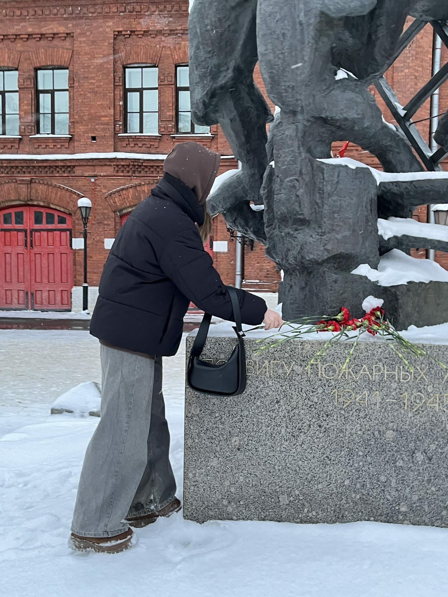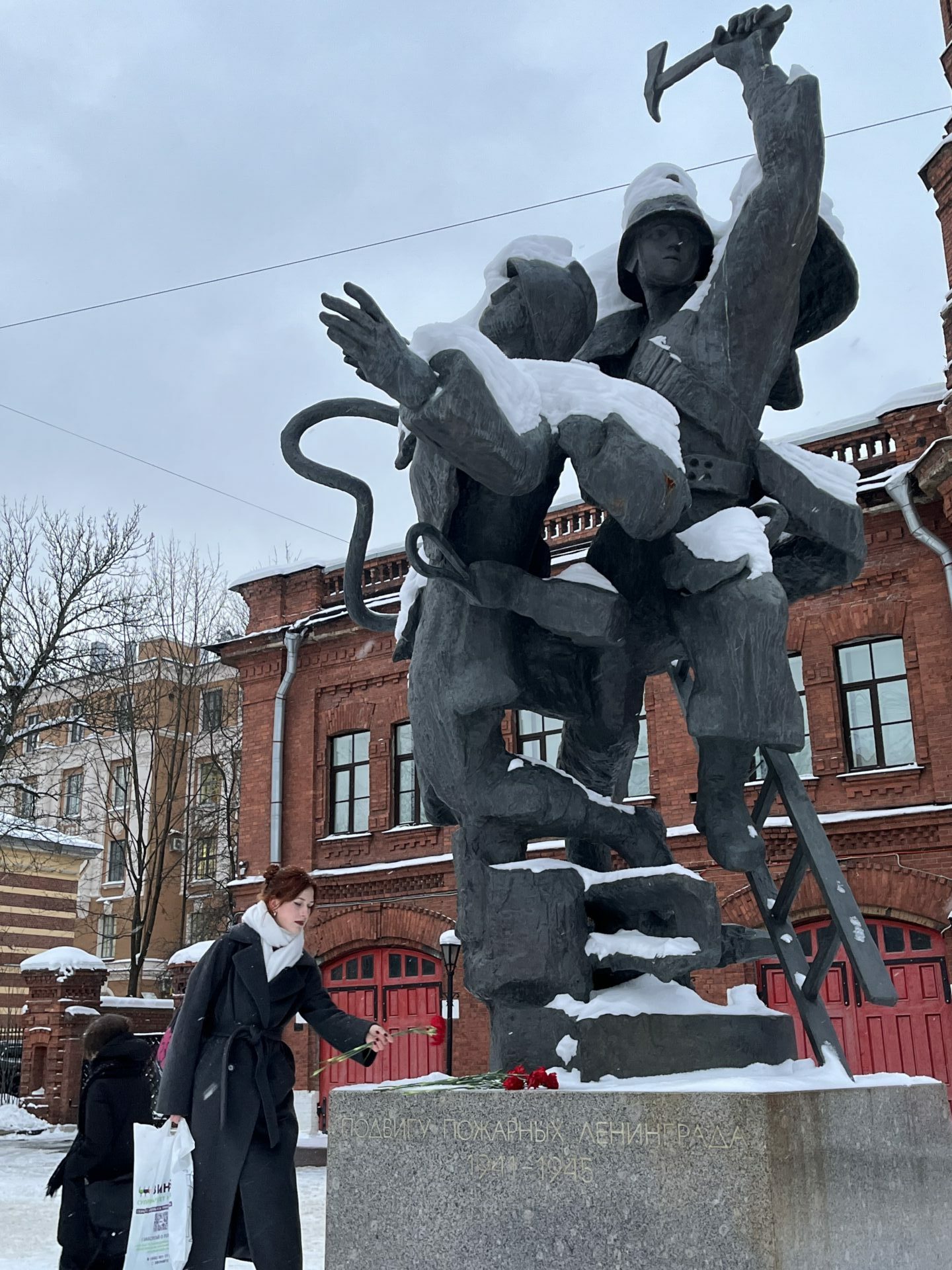 Акция прошла у памятника «Подвигу пожарных Ленинграда 1941–1945 гг.», посвященного тем, кто в нечеловеческих условиях блокады боролся с огнем, спасал жизни и сохранял город.