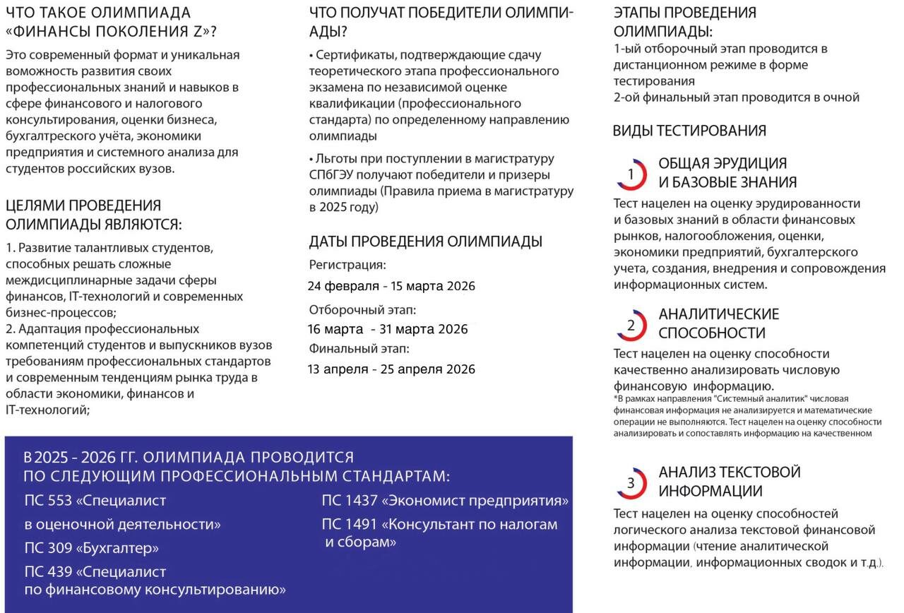 Сроки проведения олимпиады «Финансы поколения Z» с 16.03.2026 г по 25.04.2026 г.