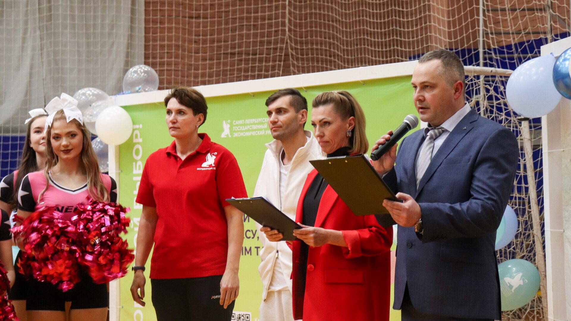 Фестиваль открылся парадом участников и выступлением управляющего спортивным комплексом Эльвиры Марсовны Рашитовой, заведующего кафедрой физической культуры, профессора Валерия Ивановича Григорьева, начальника отдела по молодежной политике СПбГЭУ Данилы Алексеевича Зубова.