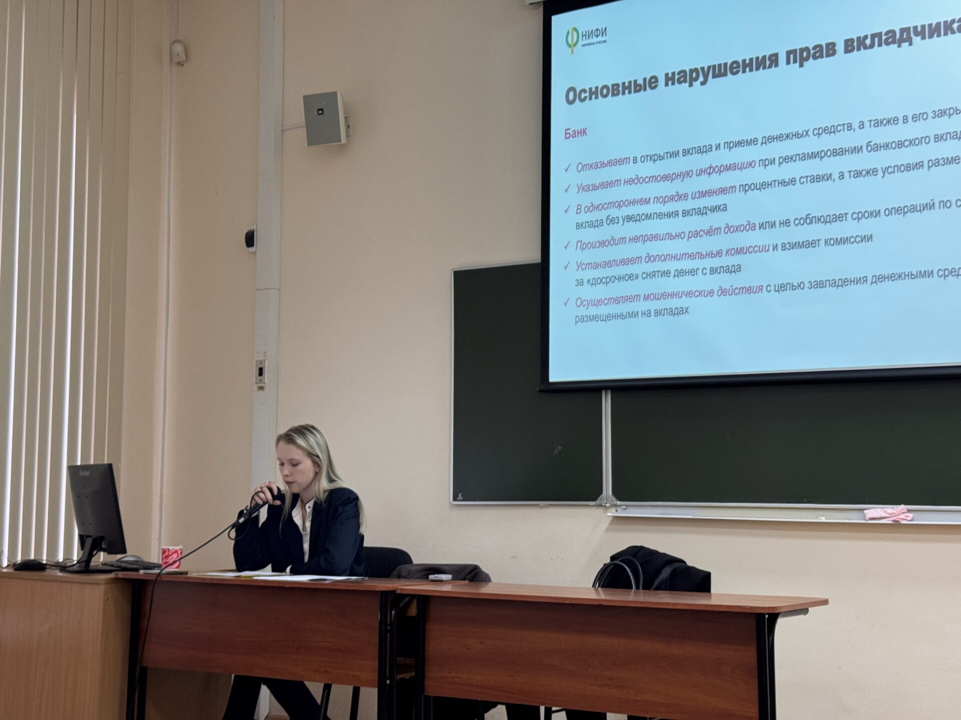Темой обсуждения со студентами стала защита прав потребителей финансовых услуг. В рамках лекции был затронут ряд важных аспектов: