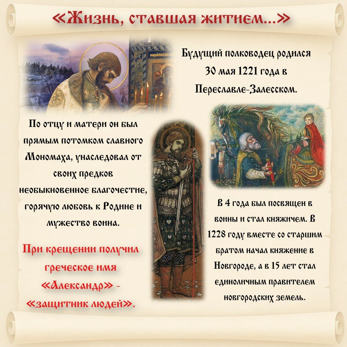 Подробное жизнеописание святого князя Александра Невского, написанное протоиереем, историком М.И. Хитровым, переизданное и дополненное.