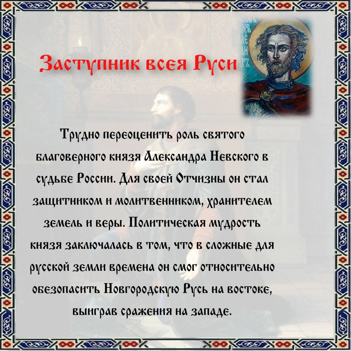 Один из очередных выпусков серии «Русскiй мiръ в лицах» посвящен земной и посмертной биографии великого князя Александра Невского, причисленного Церковью к лику святых.