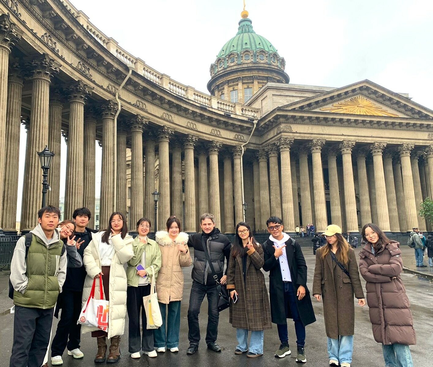 В рамках культурно-образовательной программы студенты посетили ключевые достопримечательности города: Дворцовую площадь, Казанский собор, Капеллу, Собор Спаса-на-Крови, Михайловский сад и Площадь Искусств.