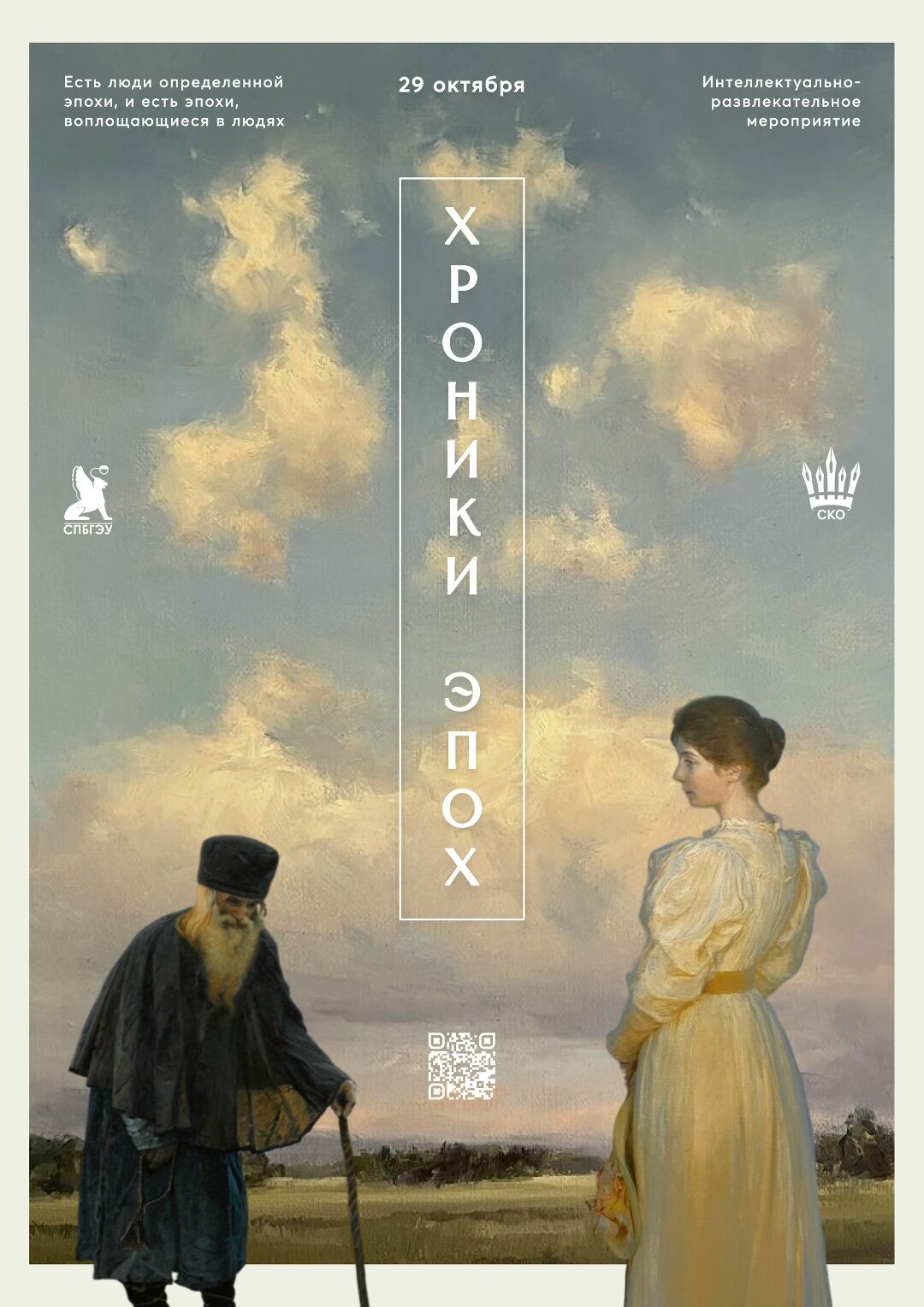 29 октября в главном корпусе СПбГЭУ прошло интеллектуально-развлекательное мероприятие «Хроники эпох». Тематика заключалась в путешествии сквозь время, сквозь эпохи, не изучать историю, а проживать, чтобы лучше понять себя и сегодняшний мир.
