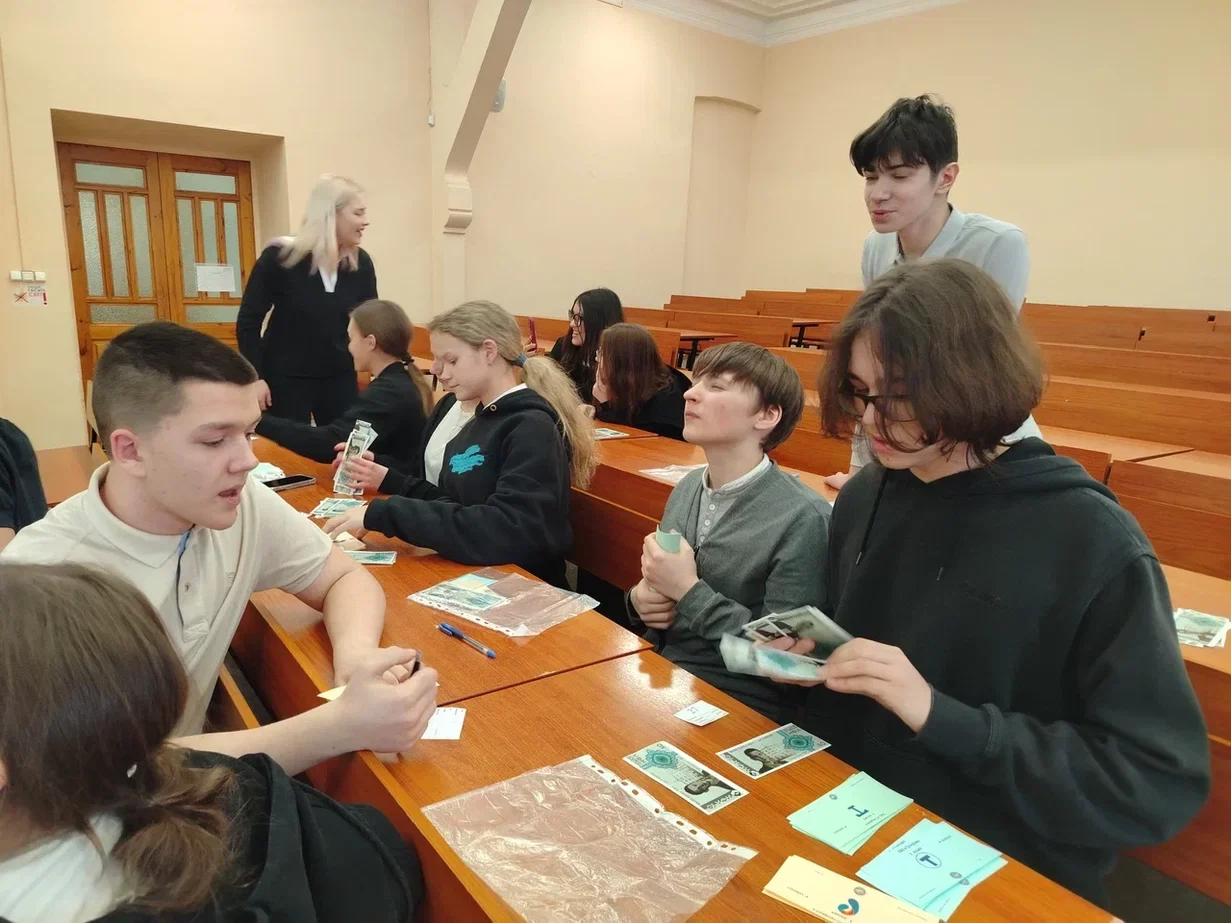 Школьники (лицей 126 Санкт-Петербурга) управляли собственным игровым инвестиционным портфелем, принимали инвестиционные решения на основе рыночной информации и стремились получить максимальную доходность. Знакомство с профессией и направлением подготовки провела доцент кафедры банков, финансовых рынков и страхования Кравцова Наталья Игоревна.