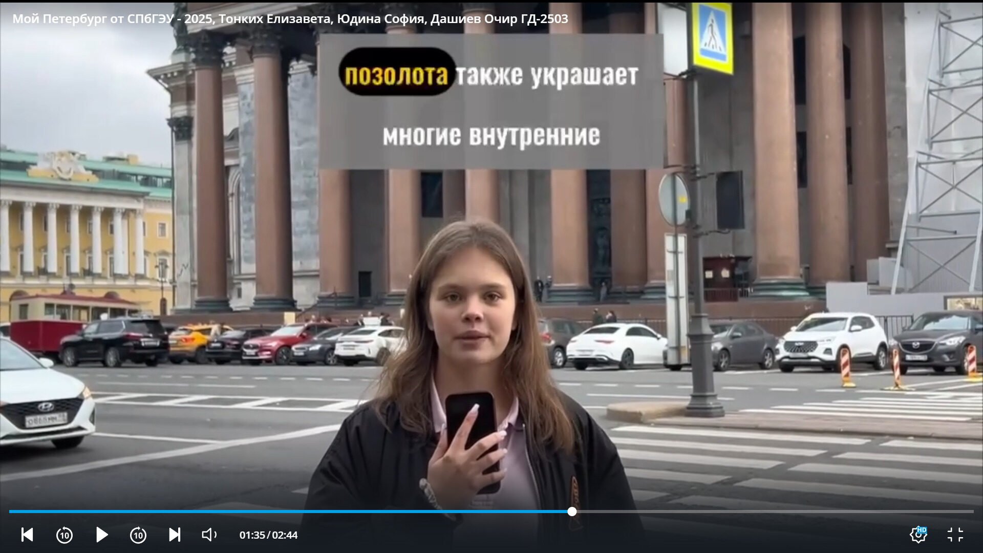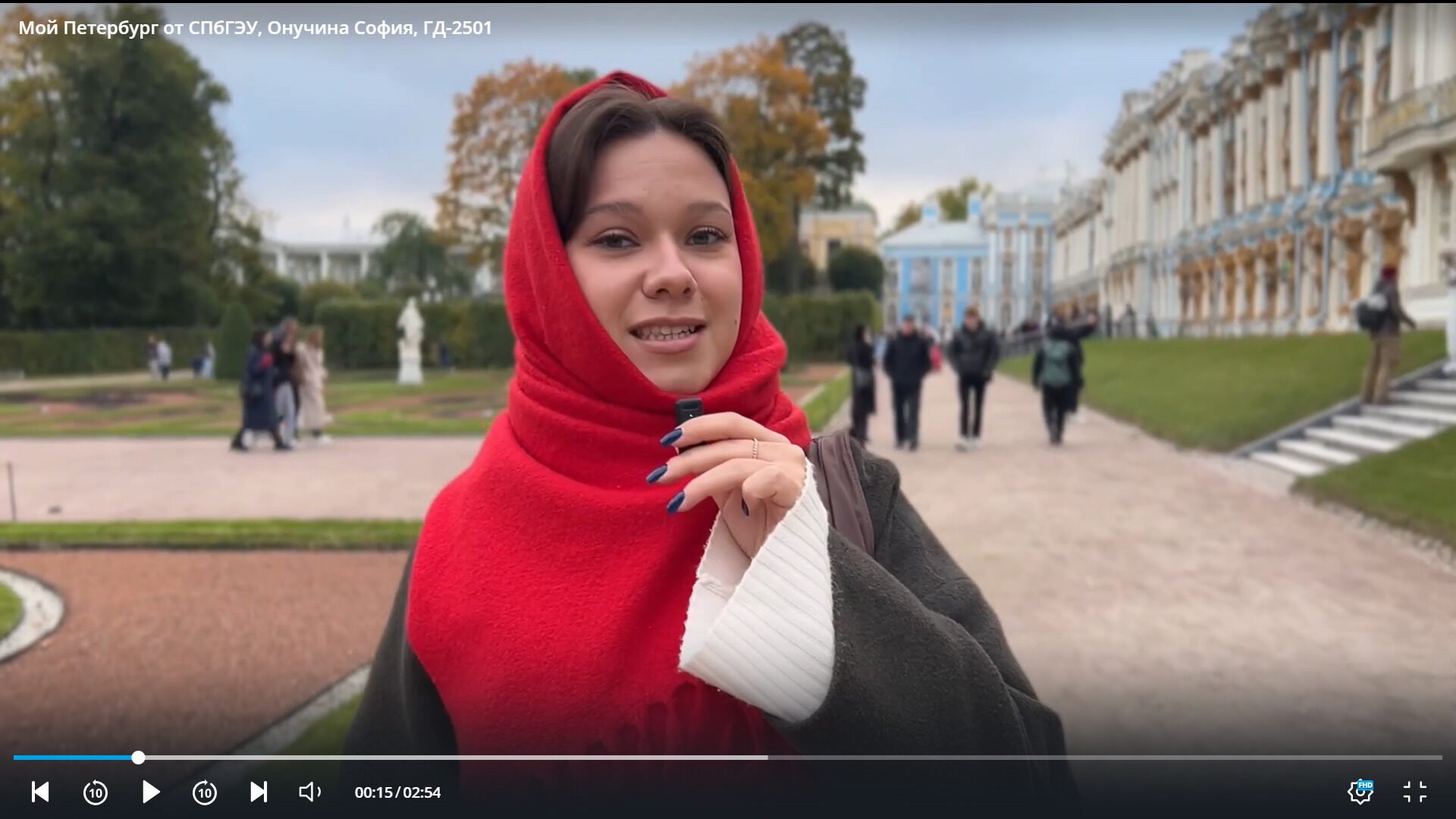 2 место разделили: Онучина София, группа ГД-2501, видео об ансамбле Екатерининского дворца и парка, и Сабукевич Ульяна, группа ГД-2502, видео о котах в метрополитене;