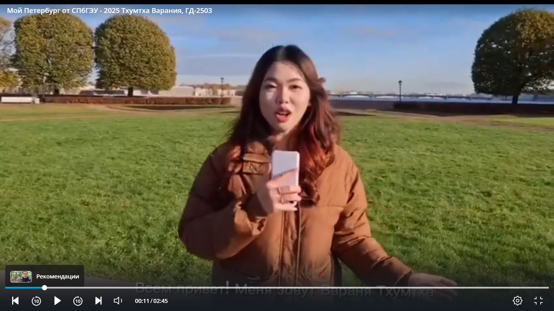 3 место разделили: Тхумтха Варанйа, группа ГД-2503, видео об ансамбле Стрелки Васильевского острова, и Грунина Варвара, группа ГД-2501, видео о Новой Голландии.