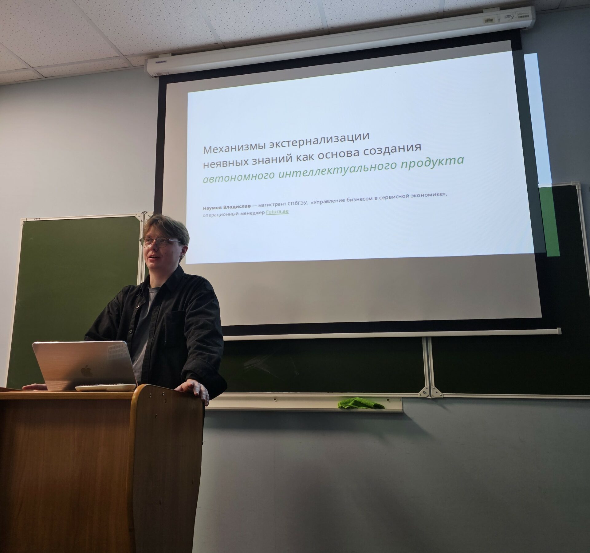 Тема доклада: Механизмы экстернализации неявных знаний в консалтинге как основа создания автономного интеллектуального продукта. Научный руководитель — доцент Василиха Д.Ф.