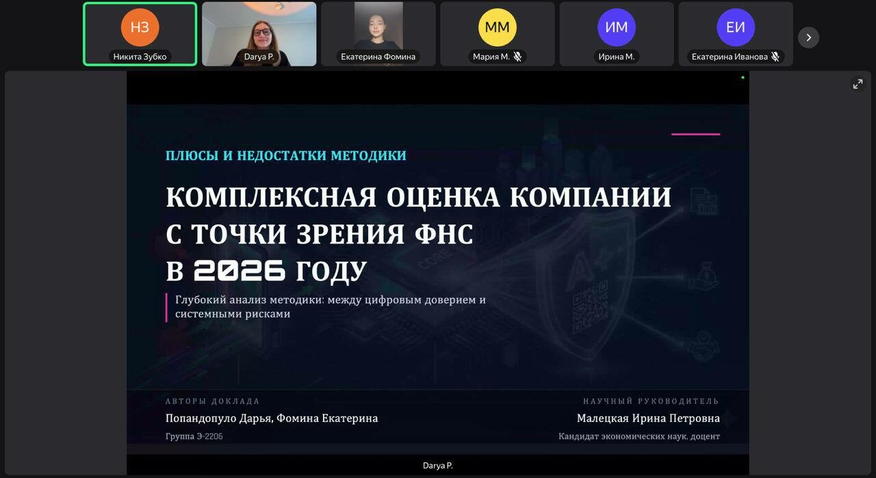 — «Комплексная оценка компании с точки зрения ФНС в 2026 году: плюсы и недостатки методики» Попандопуло Дарьи и Фоминой Екатерины;