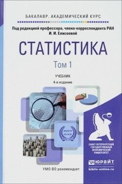 Статистика : учебник для академического бакалавриата : [в 2 томах] / [Елисеева И.И. и др.] ; под ред. И.И. Елисеевой ; С.-Петерб. гос. экон. ун-т. — Т. 1. 4-е изд., перераб. и доп. – Москва : Юрайт, 2015. — 332 с. : ил., табл. — (Бакалавр. Академический курс) (Учебник). — Библиогр. в подстроч. примеч. — Авт. указаны на с. 10. — Среди авт. также: Михайлов Б.А., Егорова И.И., Капралова Е.Б., Лаптев В.И., Парик И.Ю. и др. — На тит. л.: Выбор вузов России, 2014.