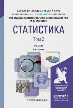 Статистика : учебник для академического бакалавриата : [в 2 томах] / [Елисеева И.И. и др.] ; под ред. И.И. Елисеевой ; С.-Петерб. гос. экон. ун-т. — Т. 2. — 4-е изд., перераб. и доп. — Москва : Юрайт, 2015. 346 с. : ил., табл.— (Бакалавр. Академический курс) (Учебник). – Библиогр.: с. 344-346. – Авт. указаны на с. 7. — Среди авт. также: Михайлов Б.А., Егорова И.И., Капралова Е.Б., Лаптев В.И., Парик И.Ю. и др. — На тит. л.: Выбор вузов России, 2014.