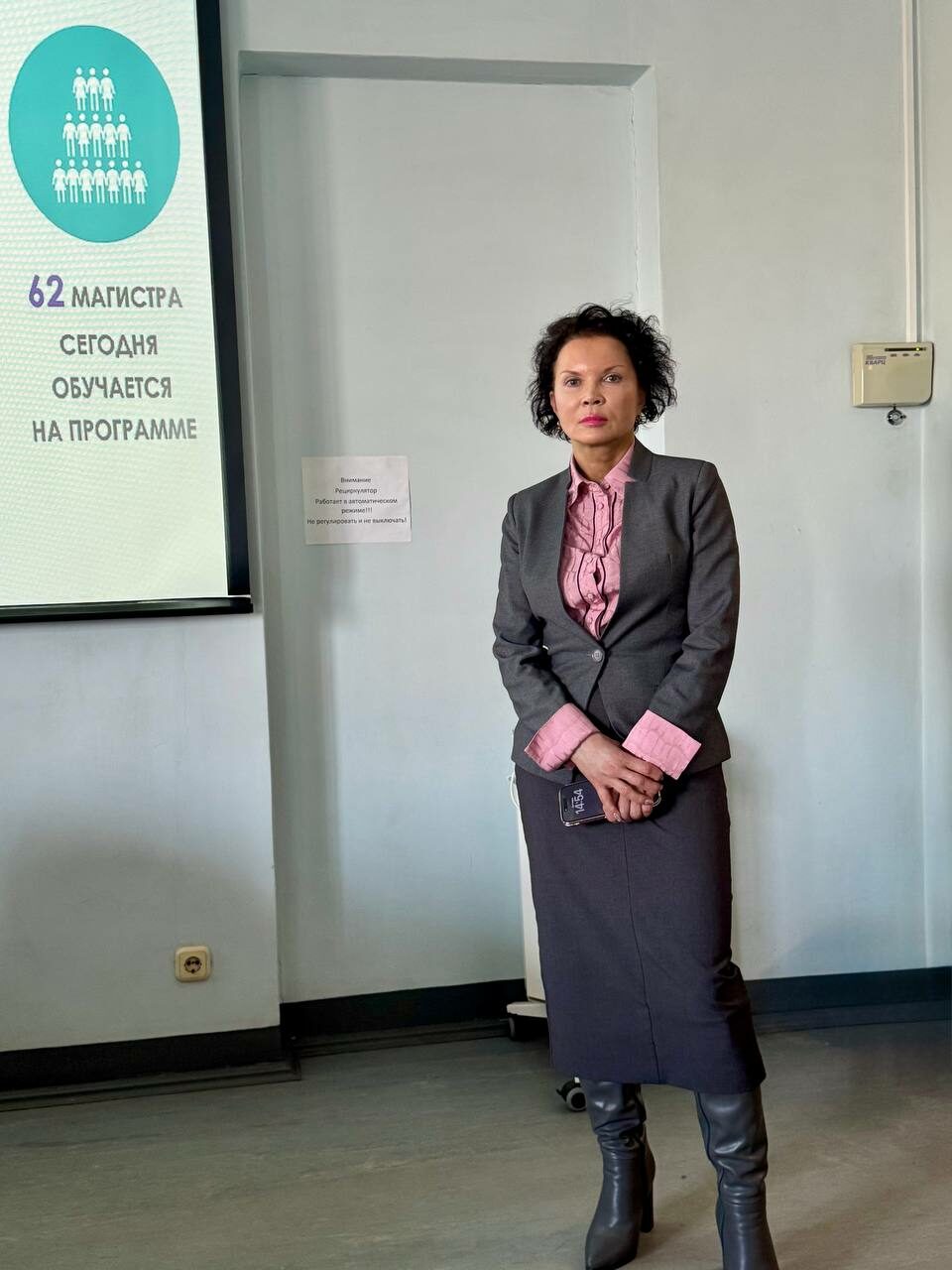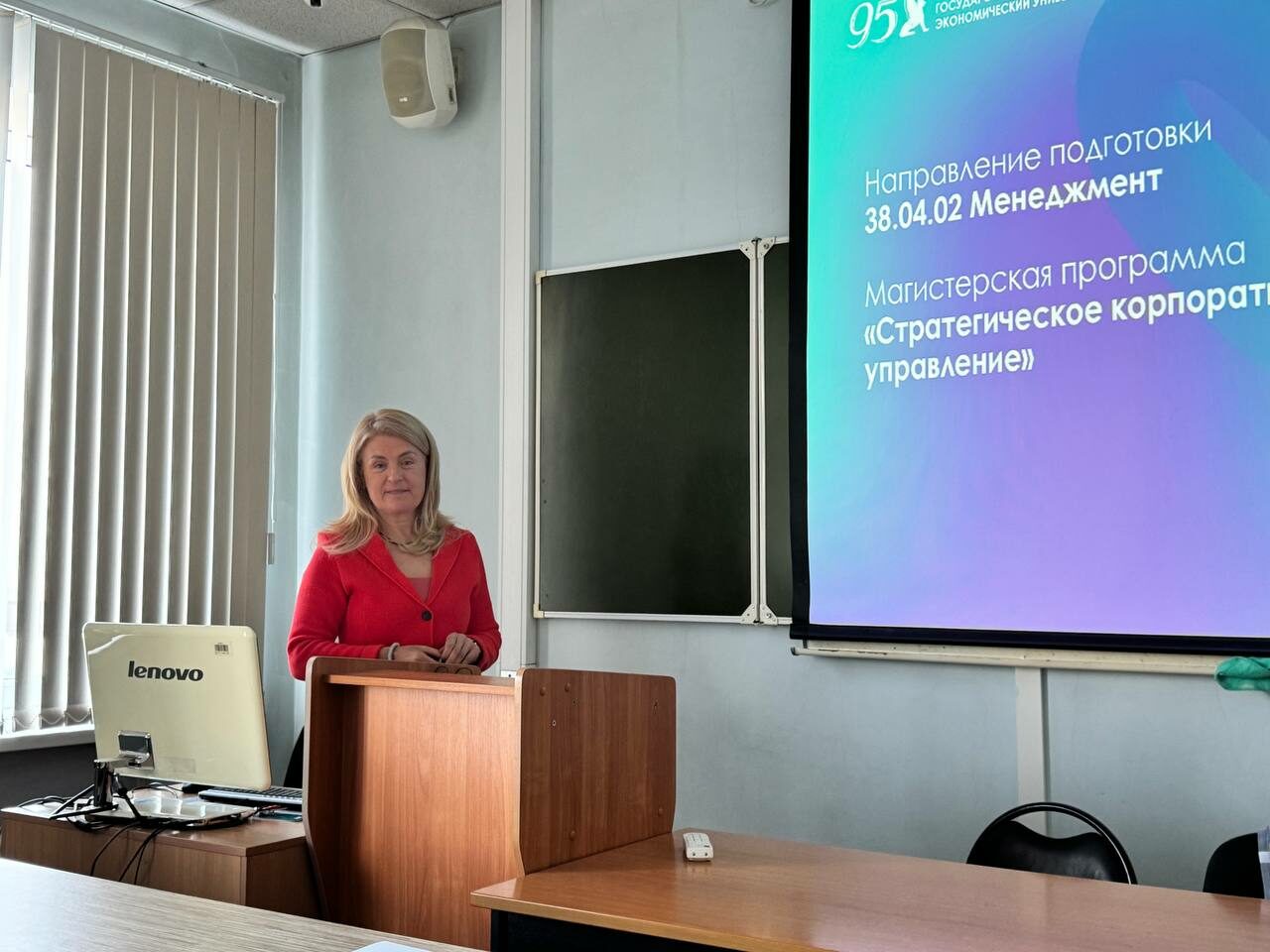 Доцент Кадырова Ольга Васильевна представила две программы — «Стратегическое корпоративное управление» и «Экономика предпринимательства и стартап». Она рассказала бакалаврам о преимуществах данных программ, осваиваемых дисциплинах и профессорско-преподавательском составе.
