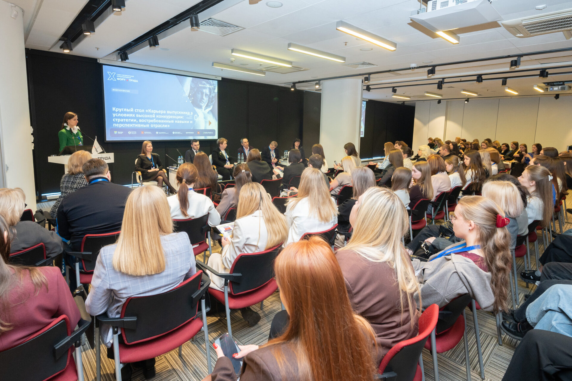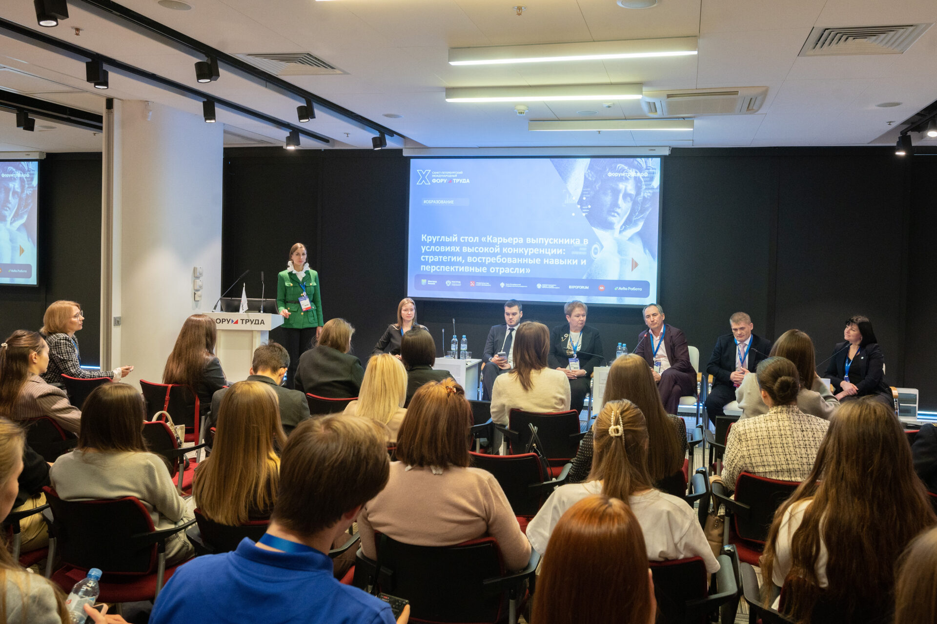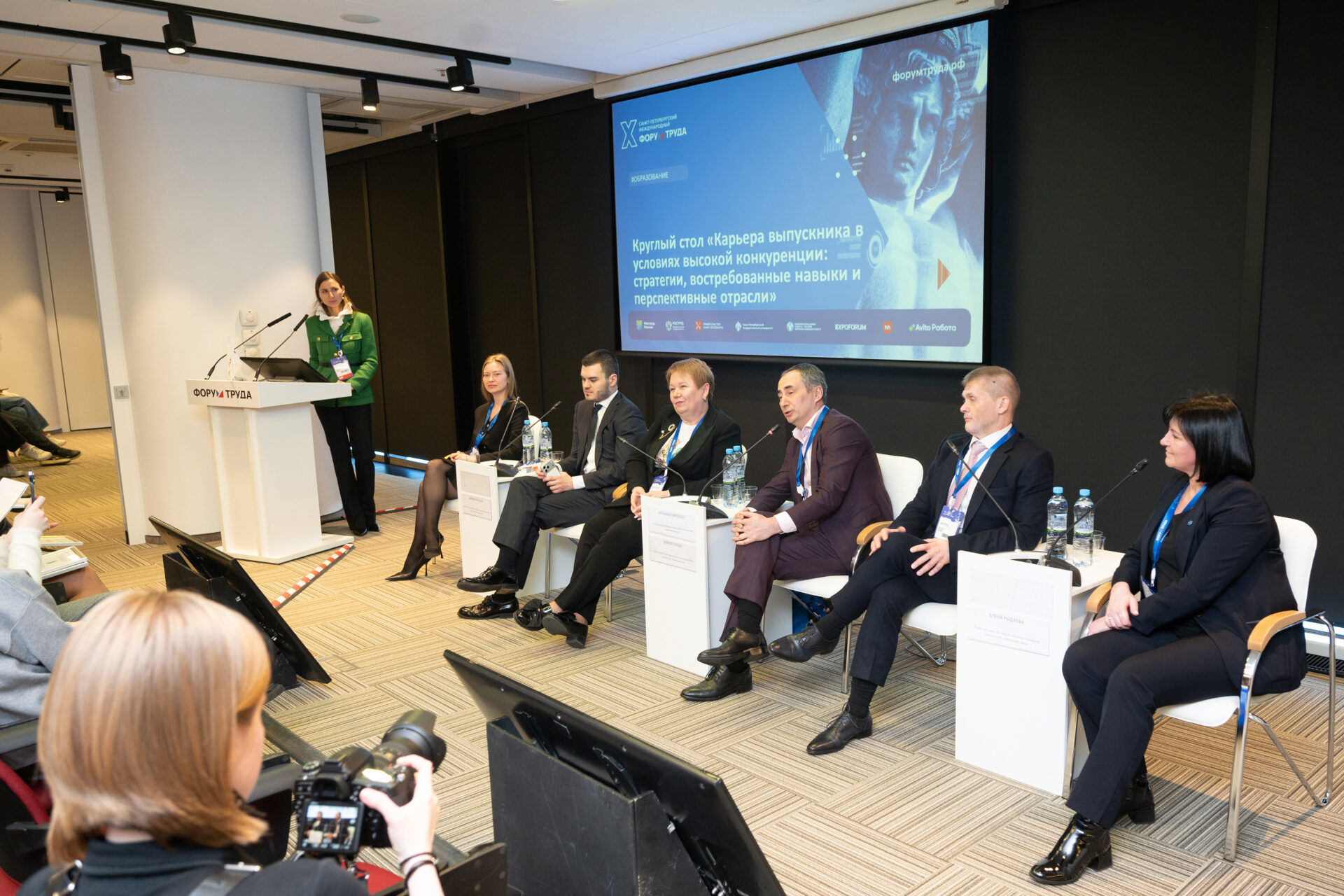 10 апреля в рамках X Санкт-Петербургского Международного Форума Труда прошел круглый стол «Карьера выпускника в условиях высокой конкуренции: стратегии, востребованные навыки и перспективные отрасли», организованный Управлением по работе с выпускниками и корпоративными партнерами совместно с Ассоциацией выпускников СПбГЭУ.
