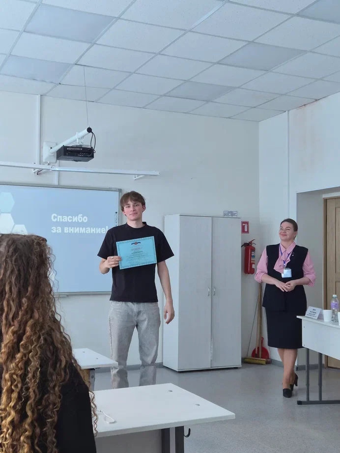 — Богатырёв Кирилл и Филатов Тимофей с работой «Канбан для начинающих: как избежать лишних запасов с помощью карточек», руководитель Иостман М.К.