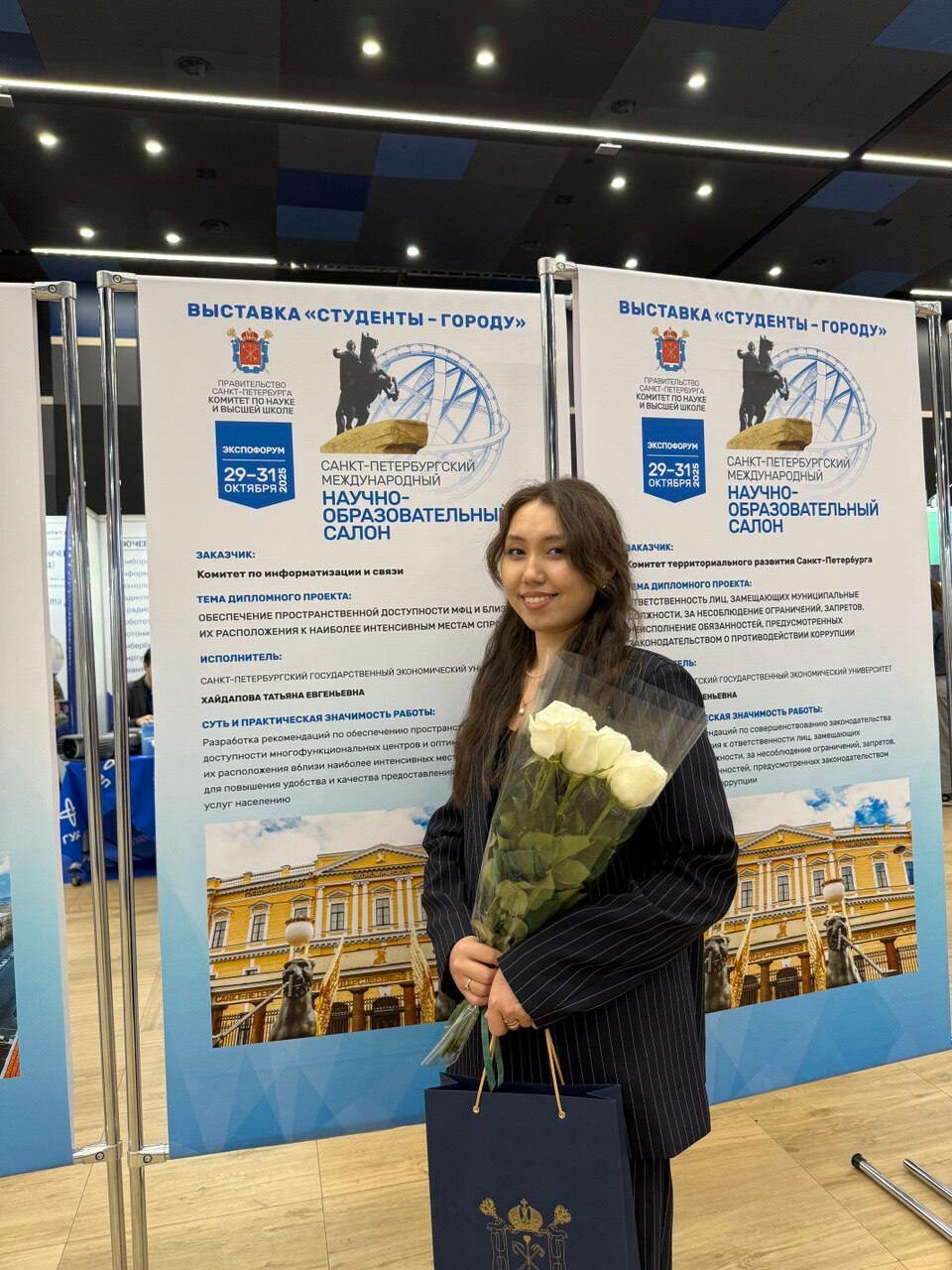 «Особая ценность этой работы в том, что она выполнялась на материалах Санкт-Петербургского государственного казенного учреждения «Многофункциональный центр предоставления государственных и муниципальных услуг». Это позволило не просто рассуждать теоретически, а работать с реальными данными – о сети отделений, загрузке окон, плотности населения и транспортной доступности. Главный результат исследования – практически применимая логистическая модель развития сети МФЦ Санкт-Петербурга до 2030 года, учитывающая прогноз численности населения, транспортную связанность и экономическую целесообразность. В конечном итоге предложенный нами подход позволяет планировать развитие инфраструктуры МФЦ не просто «по нормативу», а на основе реальных потребностей жителей и логистических принципов эффективности. Это шаг к созданию более сбалансированной, удобной и клиентоориентированной системы государственных услуг», – рассказала о своей выпускной работе Татьяна Хайдапова.