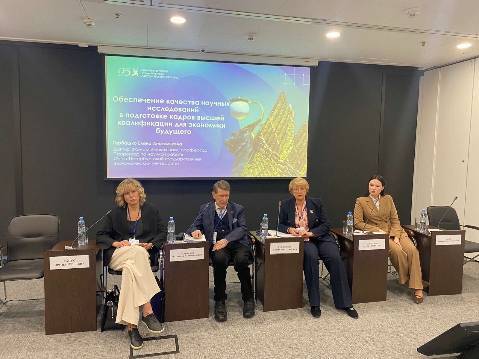 Освещению актуальных проблем обеспечения качества научных исследований и его роли в подготовке кадров высшей квалификации для экономики будущего был посвящен доклад Горбашко Елена Анатольевна, проректора по научной работе Санкт-Петербургского государственного экономического университета, заведующего кафедры проектного менеджмента и управления качеством.