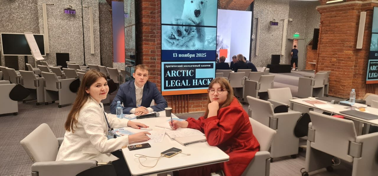 Студенты юридического факультета Санкт-Петербургского государственного экономического университета Романов Александр, Зосян Анастасия, Положенцева Арина, Инжебейкина Анна приняли участие в Арктическом молодежном правовом хакатоне.