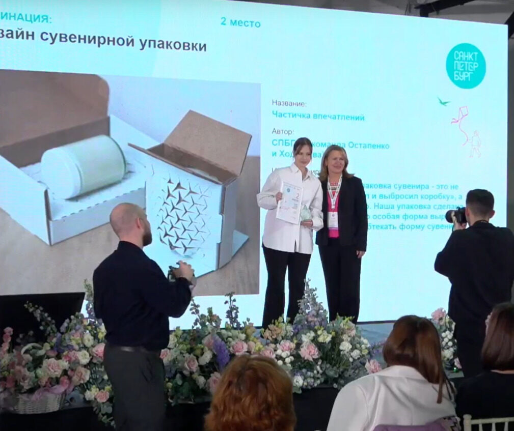 Более 300 заявок были представлены на суд компетентного жюри регионального конкурса «Новая культура сувениров в Санкт-Петербурге -2025». В финал вышли 40 лучших образцов сувениров, пять из которых были созданы студентами второго курса гр. С-2401 и С-2402, обучающихся на программе бакалавриата «Управление и дизайн в индустрии событий», направление «Сервис».