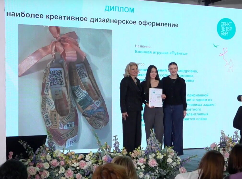 - Специальным дипломом жюри «За наиболее креативное дизайнерское решение» была отмечена Елочная игрушка «Пуанты», созданная командой из группы С-2401 — Ксения Аленина, Ассоль Лихачева и Руслана Сухих.