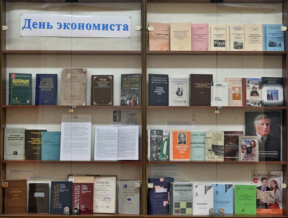 Дата празднования Дня экономиста в России была выбрана в связи с основанием в 1765 году Императорского Вольного Экономического общества, существенно повлиявшего на экономическую историю России. Представлены книги по истории экономической мысли России, биографическая и учебная литература.