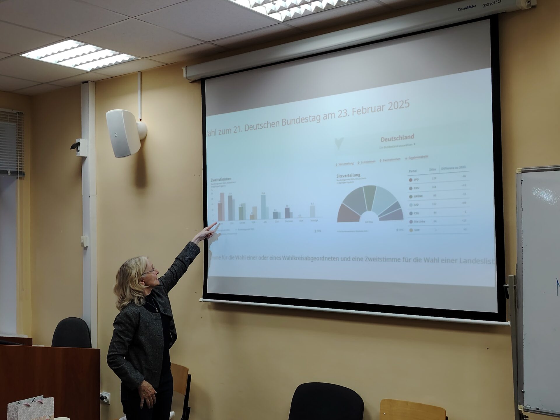 Лекция проходила на немецком языке и была посвящена особенностям политического ландшафта Германии и специфике его отражения в современных немецкоязычных СМИ.