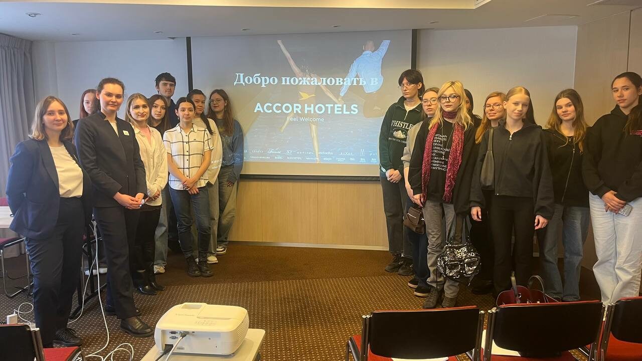 Встреча состояла из двух частей. Первая часть – знакомство с брендом Ассоr и его основными ценностями, вторая – экскурсия по отелю, осмотр номеров разных категорий, ресторана GREEN, тренажерного зала. У студентов была возможность задать вопросы, а вся встреча прошла в формате беседы, во время которой студенты поделились тем, почему они выбрали гостиничное дело и кем хотели бы работать. Кстати, Маргарита – наша выпускница. Она закончила факультет сервиса, туризма и гостеприимства СПбГЭУ в 2022 году. Ее карьера в Novotel Санкт-Петербург Центр началась на 3 курсе в качестве практиканта.