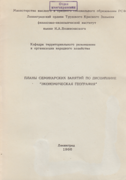 Данное учебно-методическое пособие включает в себя планы семинарских занятий по дисциплине «Экономическая география» со списком литературы и темами, такими как: предмет, метод и задачи экономической географии, политическая карта мира, закономерности размещения и территориальной организации общественного производства, территориальное разделение труда, принципы размещения социалистического производства, природные условия и ресурсы, влияющие на размещение общественного производства, природные условия и ресурсы СССР, население и трудовые ресурсы СССР, материально-техническая база — основа экономического роста и территориальной организации хозяйства, география промышленности, сельского хозяйства, транспорта СССР, экономическое районирование СССР, экономические районы и территориально-производственный комплекс СССР.