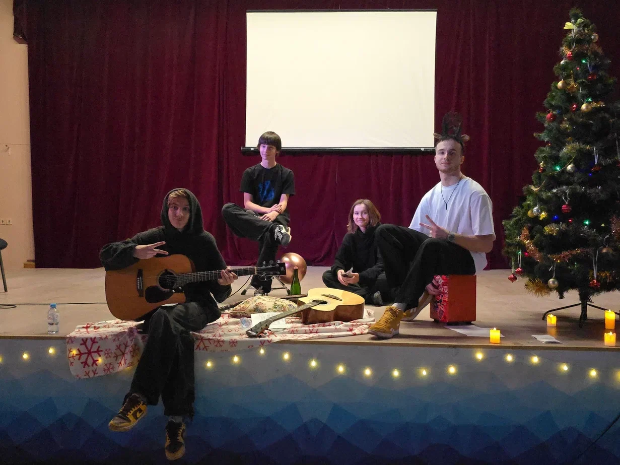 В середине декабря студенты собрались на музыкальный творческий вечер и пели песни под гитару в чарующей зимней атмосфере.