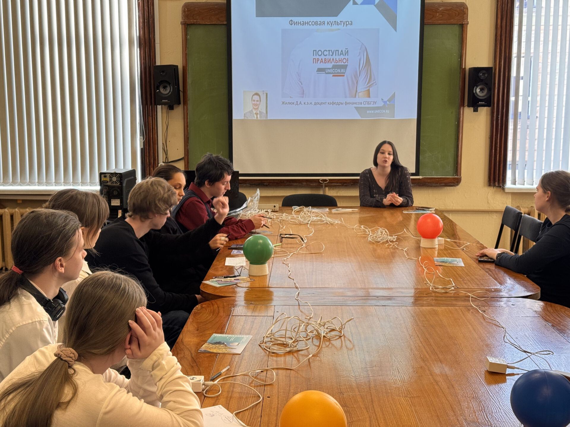 В роли ведущего выступил доцент кафедры финансов Жилюк Д.А., ассистировала студентка 2 курса факультета экономики, финансов и информационных технологий Александра Дробко.