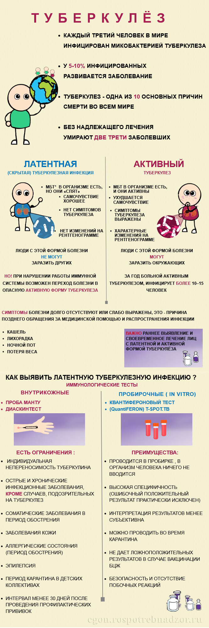 Упоминание о туберкулезе нередко вызывает у людей испуг, так как многие считают ее смертельно опасной болезнью. Несмотря на то, что несколько миллионов людей каждый год умирают от туберкулеза, на сегодняшний день туберкулез лечится и вполне успешно — антибиотиками. Лечение может быть достаточно продолжительным, в течение многих месяцев, но прогнозы на успешное выздоровление вполне благоприятные.