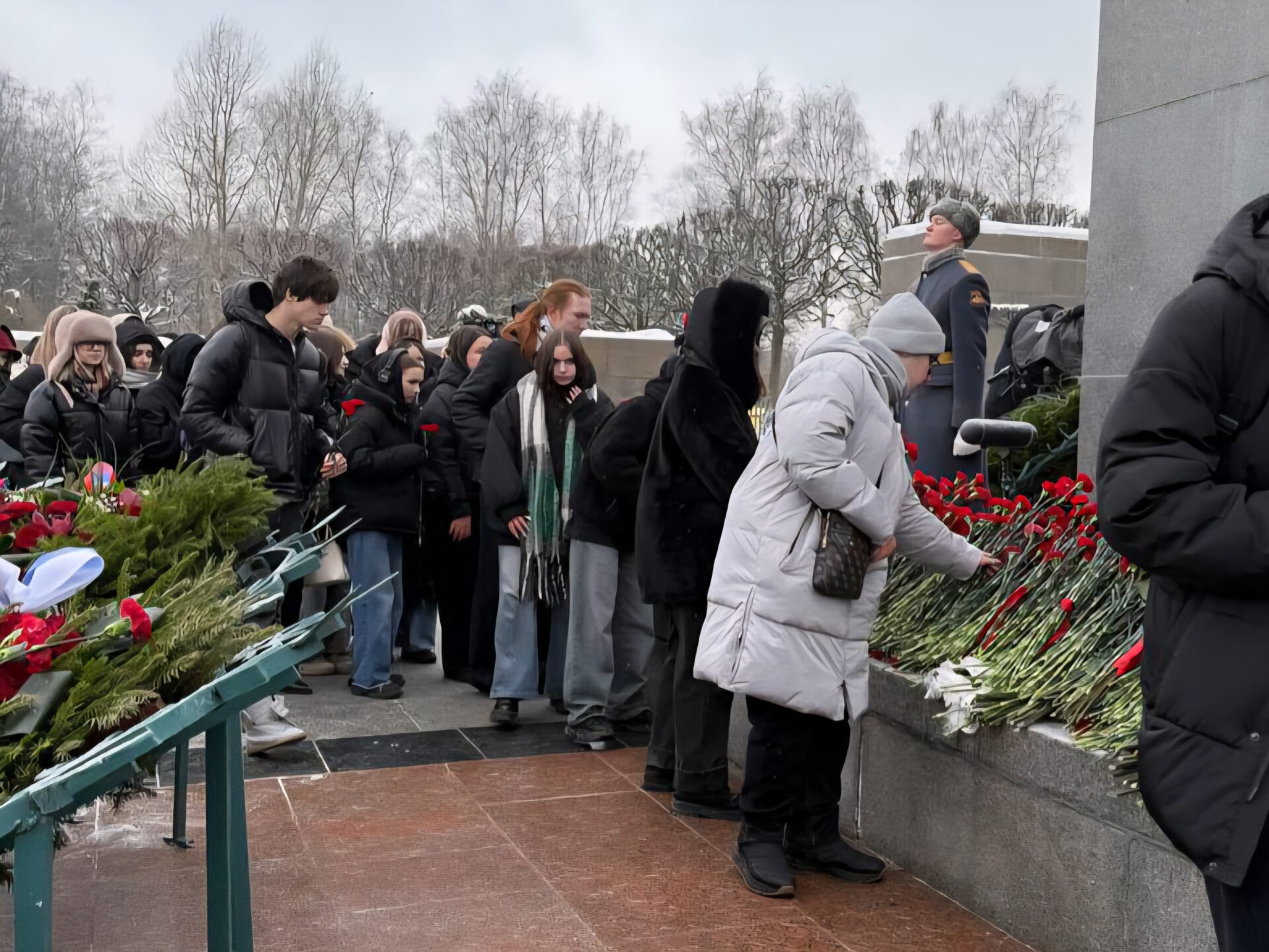 Одним из центральных возложений, куда прибыло около 80 студентов, стала церемония на Пискаревском мемориальном кладбище при участии представителей Администрации Санкт-Петербурга.