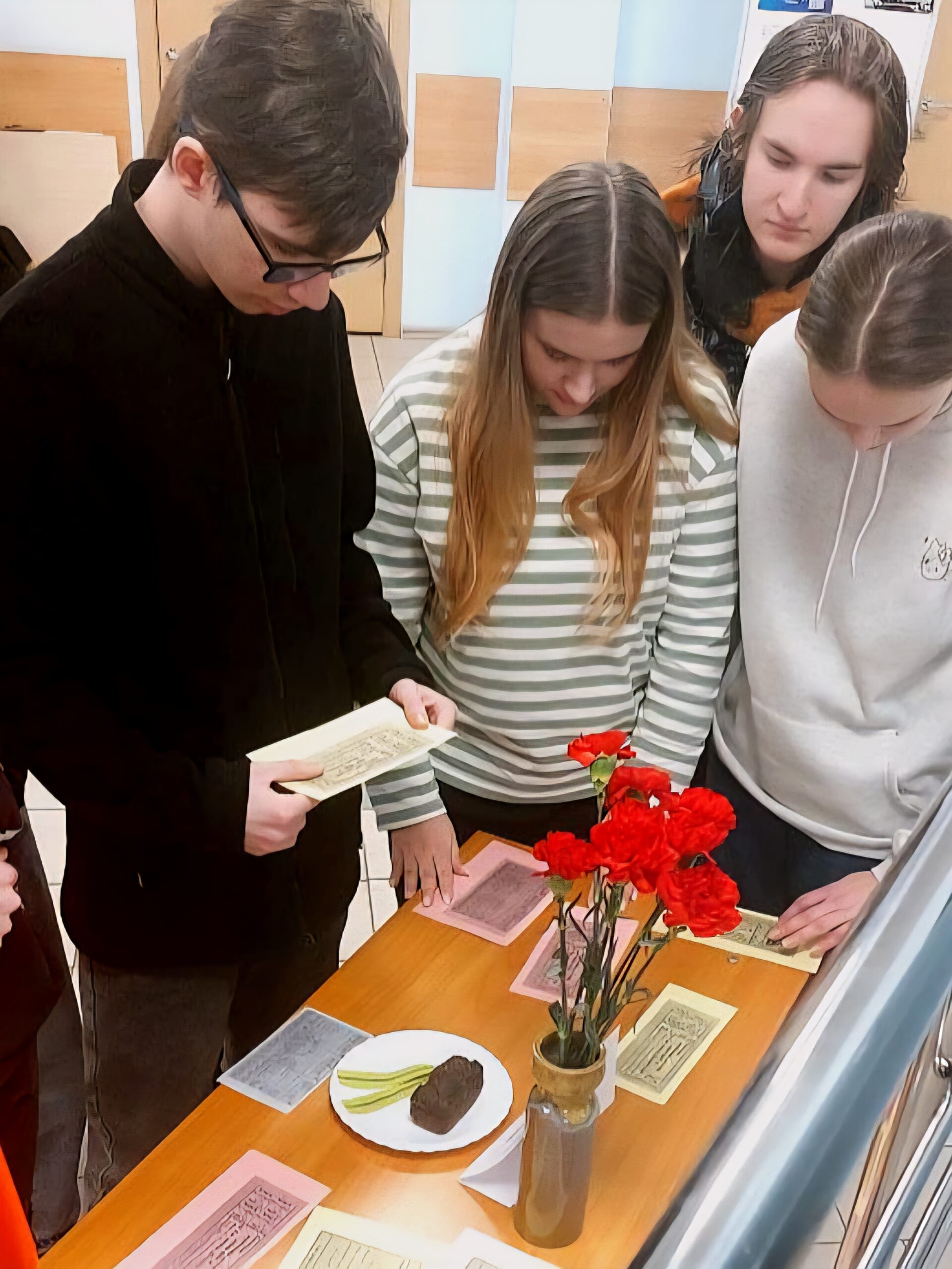 Приглашаем вас подойти к мемориальному столу на первом этаже (у государственного флага. Там представлен образец хлеба, испеченный по «блокадной» рецептуре). Остановитесь на минуту. Посмотрите на этот кусочек. Подумайте о тех, кто работал у печей под обстрелами, и о тех, для кого этот хлеб был единственным спасением. Помнить подвиг ленинградцев — наш долг. Чтить хлеб — наше призвание».