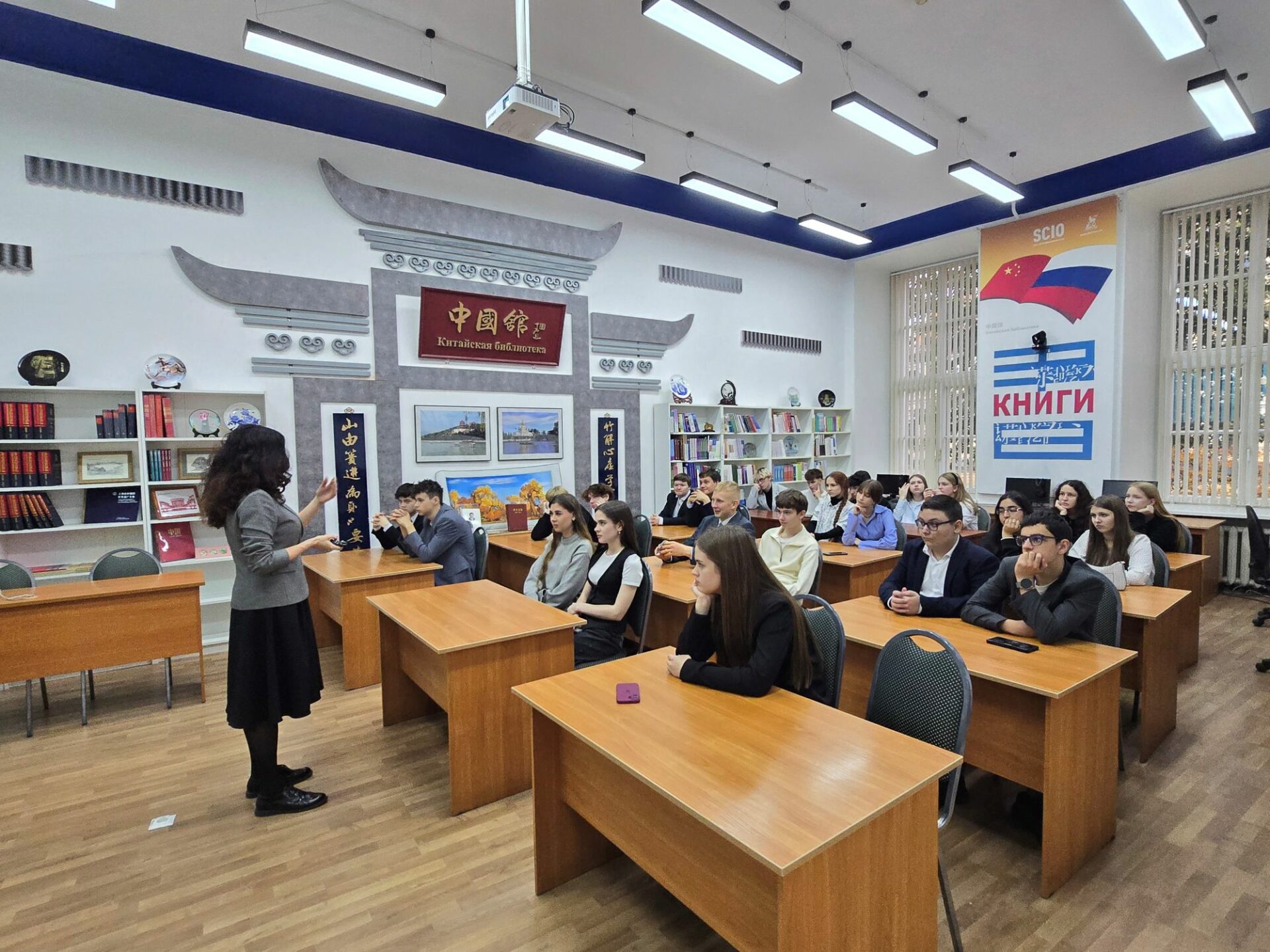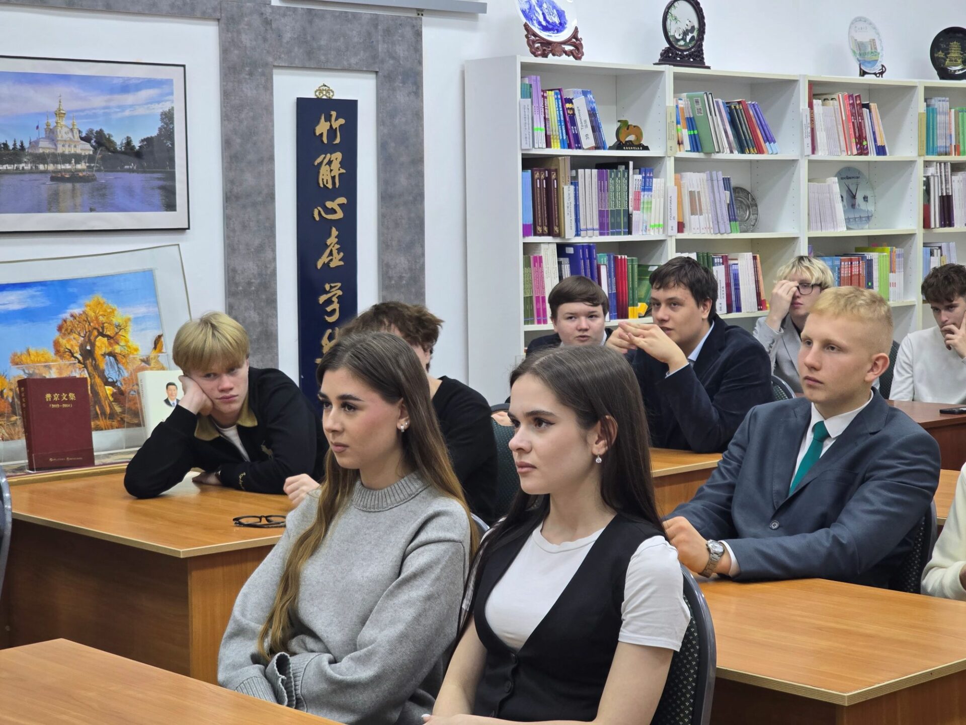Второй этап встречи прошел в стенах Китайской библиотеки СПбГЭУ — уникального пространства, сочетающего образовательные и культурные функции. Здесь старшеклассников встретила Масленникова Ольга Александровна, старший преподаватель кафедры экономики и управления в сфере услуг. Ольга Александровна провела с ребятами профориентационное тестирование, помогающее определить склонности к различным направлениям деятельности, беседу о трендах на рынке труда. Учащиеся подискутировали о перспективах профессий в сферах туризма, сервиса и гостеприимства. Школьники активно участвовали в обсуждении, задавали вопросы о востребованных компетенциях, возможностях стажировок, перспективах карьерного роста в выбранной отрасли.