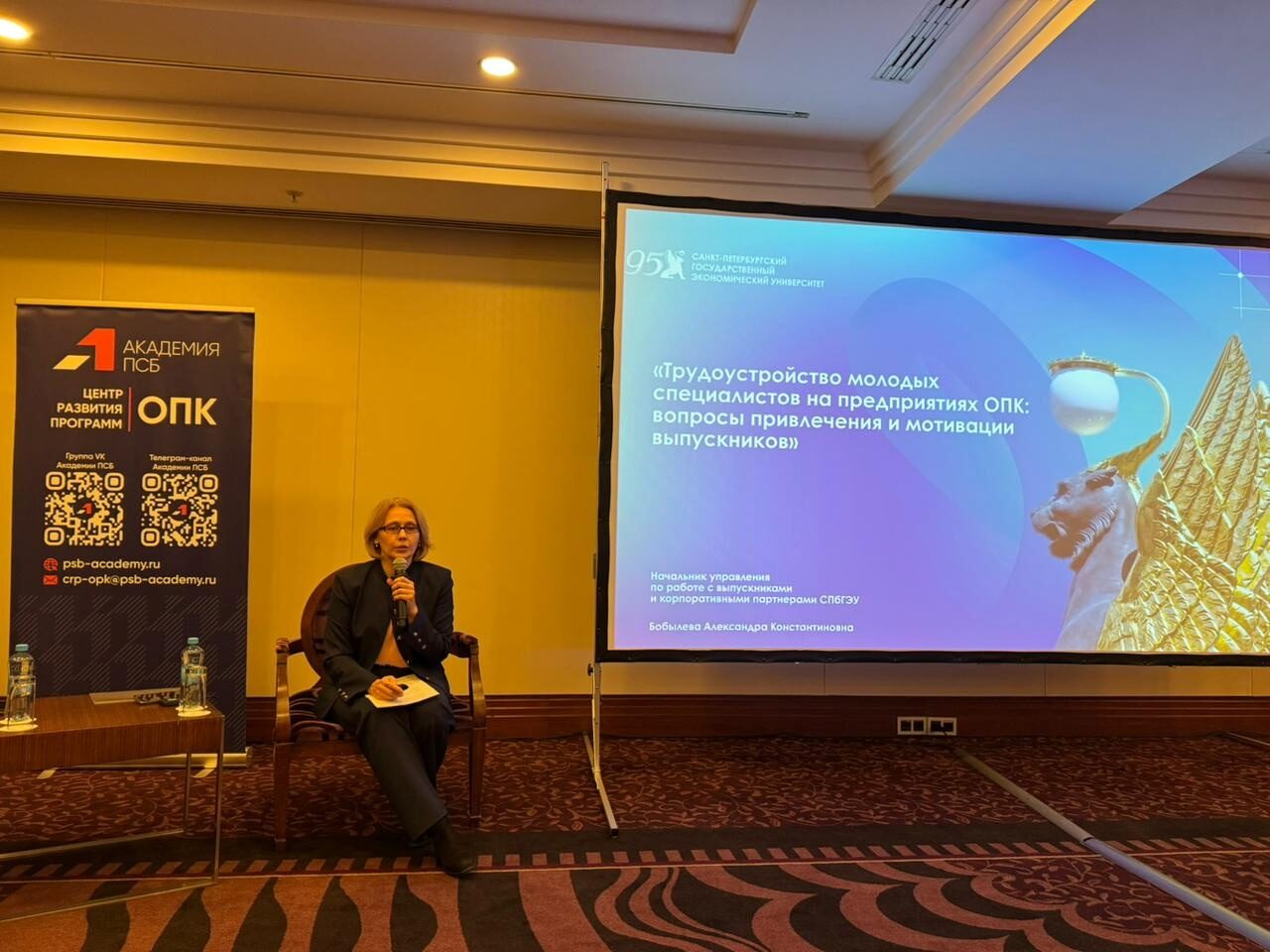 13 ноября СПбГЭУ принял участие в конференции «ОПК: платежи, риски, кадры», организованной ПАО «Банк ПСБ». Наш университет представила начальник Управления по работе с выпускниками и корпоративными партнерами Александра Бобылева.