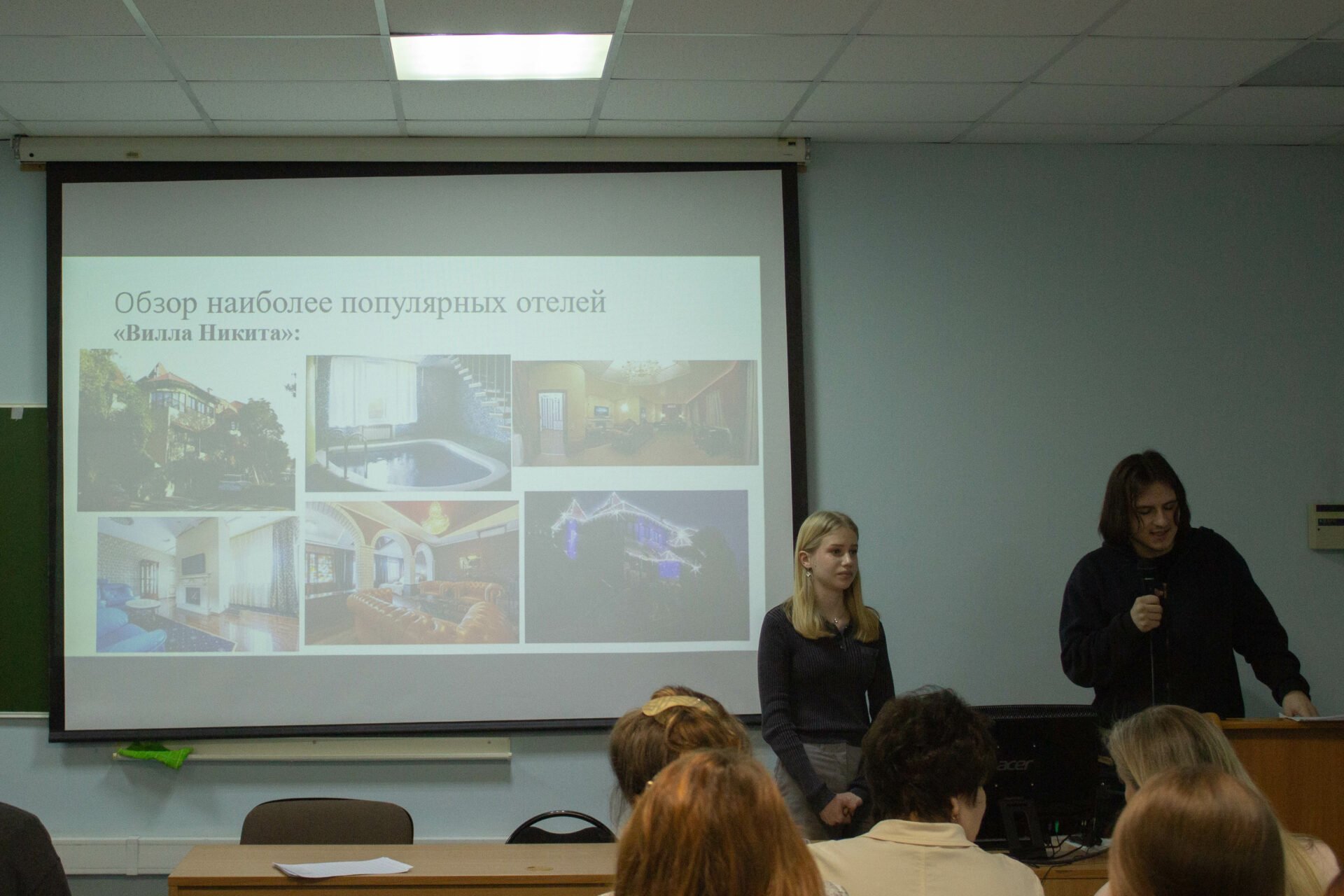 Зрительское жюри, состоявшее из 34 студентов 3 курса, в целом поддержало выбор экспертов, присудив 3-е место исследованию о влиянии развития гостиничной инфраструктуры на туристскую привлекательность дестинации, студентов 1 курса Онучиной Софии и Груниной Варвары, ГД-2501).