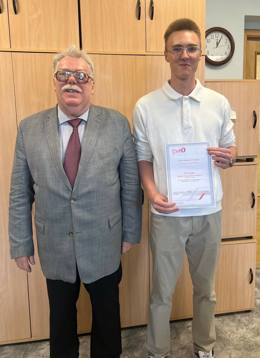 Кафедра логистики и управления цепями поставок в лице заведующего кафедрой, профессора Щербакова В.В. и всего профессорско-преподавательского состава поздравляет Крутова Вячеслава с именной стипендией и выражает благодарность руководству и специалистам Октябрьской железной дороги за поддержку профессионального развития студентов СПбГЭУ!