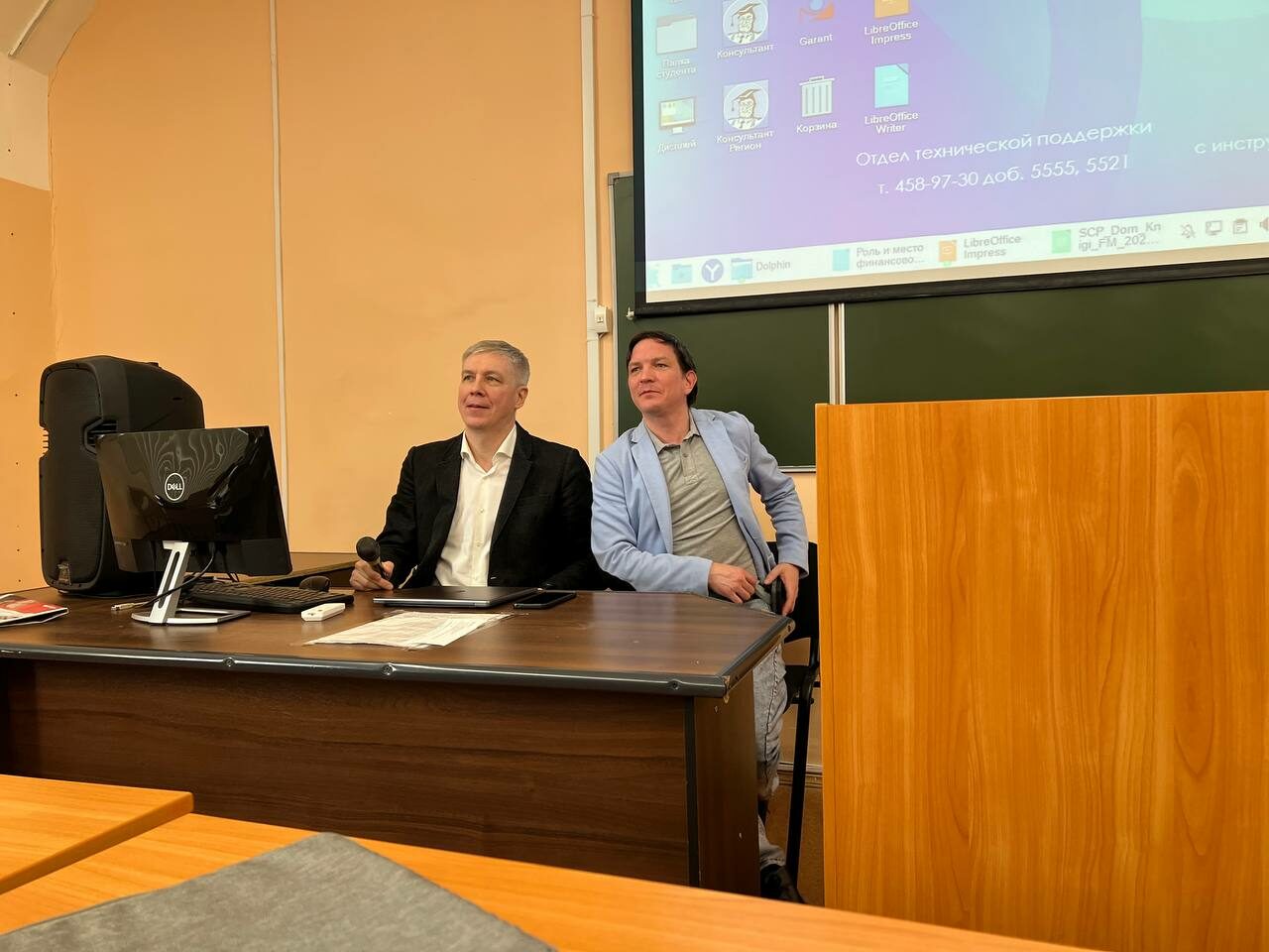 Перед студентами выступили Пламадяла Дмитрий Васильевич, заместитель генерального директора по экономике проектов ООО «Комплексное развитие территорий» и Сомсиков Юлий Витальевич, генеральный директор ООО «Свисс Консалтинг Партнерс». Встреча с гостями вызвала живой отклик аудитории и много интересных вопросов.