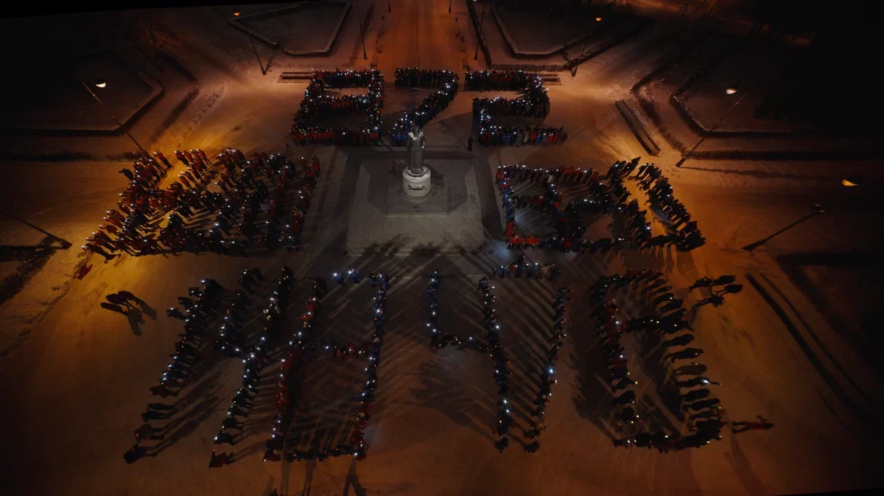 Участники акции выстроились в числовые композиции, отражающие страшную статистику блокады: 148 487 — количество выпущенных снарядов и сброшенных бомб, 12 200 — количество разрушенных зданий, 840 — количество разрушенных предприятий и заводов.