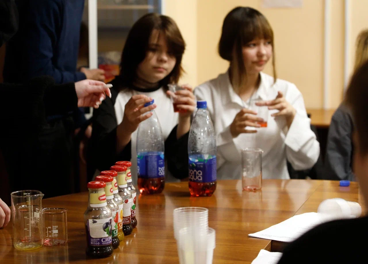 Мария Анатольевна Иванова провела занятие «За лимонадом – будущее». Школьники познакомились с основным сырьем и технологическими операциями производства напитков. Ребятам было предложено ответить на вопросы теста по напиткам и проверить свои знания. Во второй части занятия обучающиеся самостоятельно приготовили лимонад и с удовольствием его продегустировали.