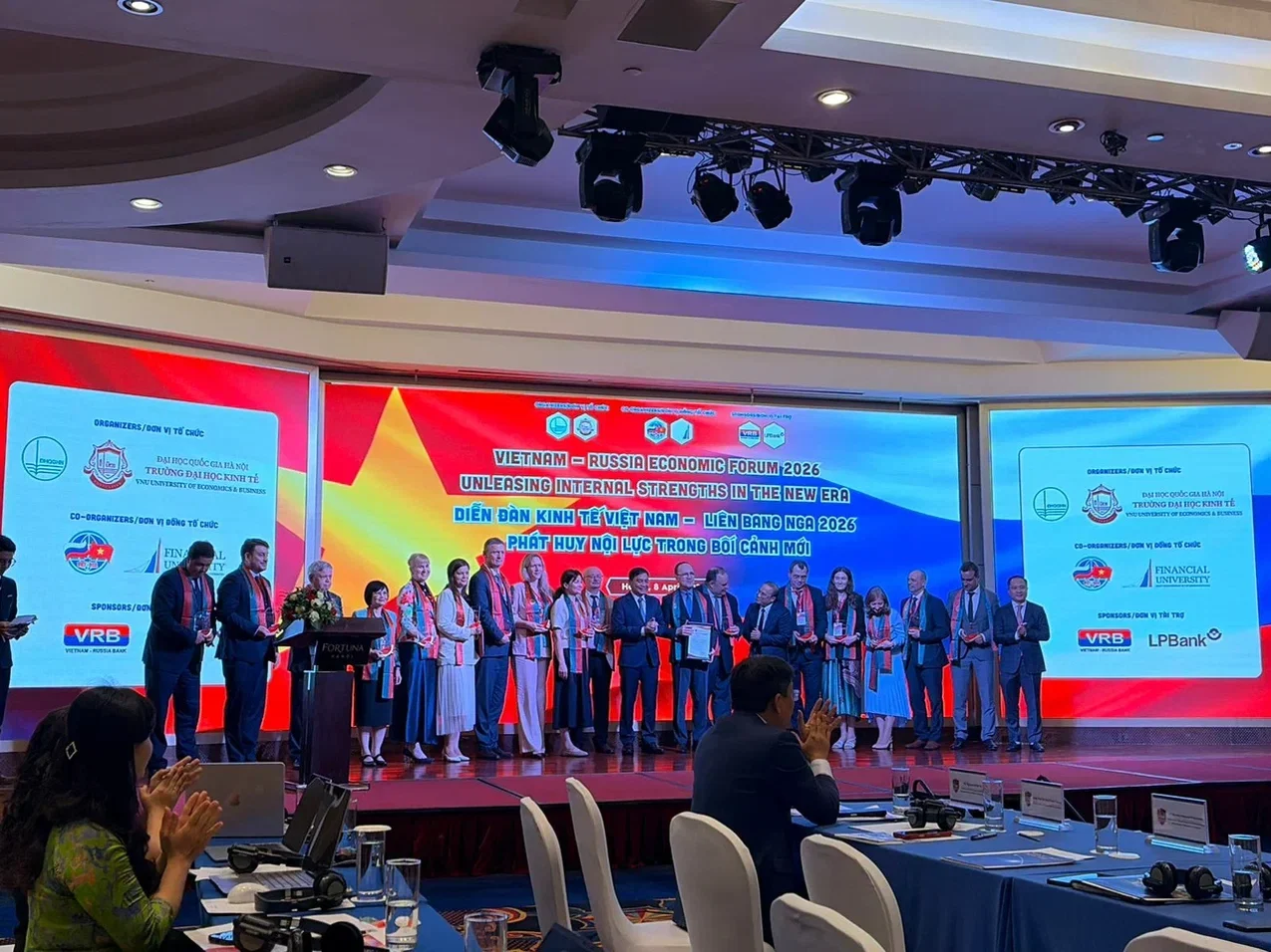 8 апреля 2026 года в Ханое прошел Российско-Вьетнамский экономический форум «Развитие внутренних ресурсов в новую эпоху». От СПбГЭУ в мероприятии приняли участие проректор по социальной и воспитательной работе Сергей Гришин, доцент кафедры региональной экономики и природопользования Станислав Бабич, доцент кафедры маркетинга Яна Салихова и доцент кафедры бухгалтерского учета и анализа СПбГЭУ Анастасия Нестерова