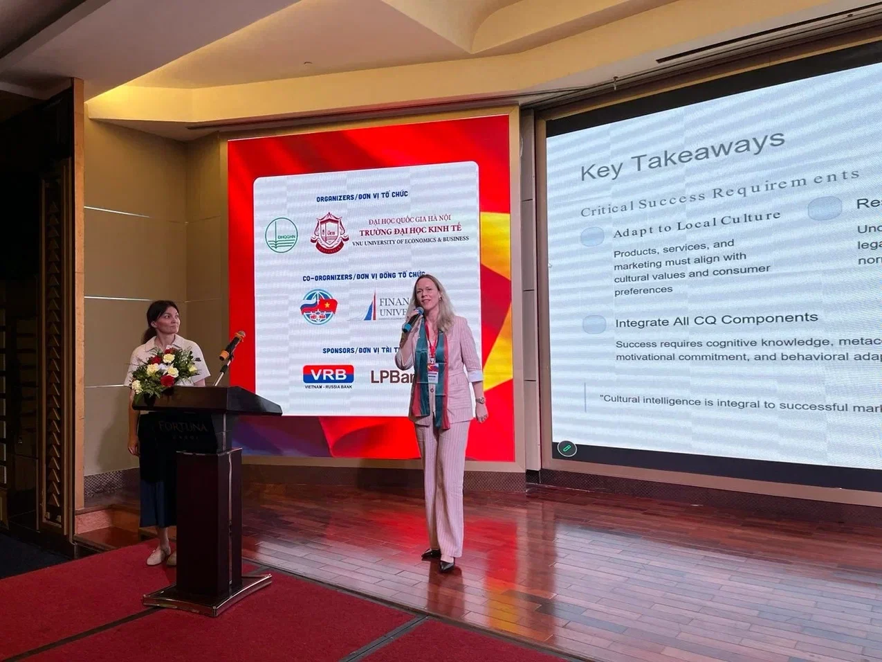 В рамках форума на секции ключевых спикеров выступил доцент Станислав Бабич с докладом на тему «Россия и Вьетнам: Инновационные подходы к рынку пищевых продуктов, энергетических ресурсов и транспортной безопасности на территории Большого Юга». Доценты Яна Салихова и Анастасия Нестерова выступили с совместным докладом на круглом столе на тему «Культурный интеллект: анализ успешных и неудачных кейсов выхода на рынок».