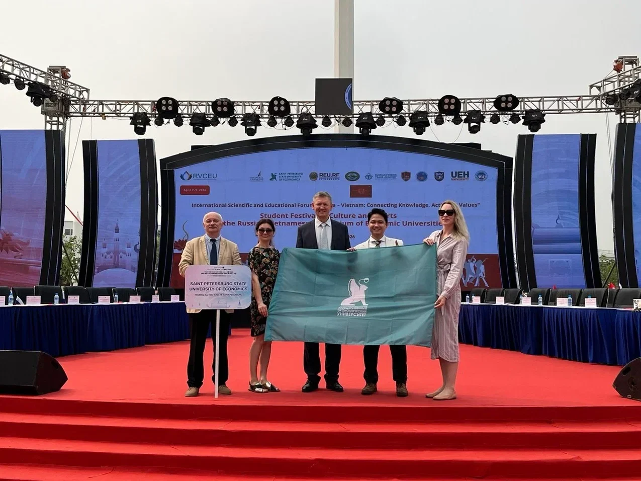 09 апреля 2026 года делегация СПбГЭУ приняла участие в студенческом Фестивале культуры и спорта Российско-Вьетнамского Консорциума экономических университетов. Мероприятие состоялось на площадке Ханойского университета финансов и банковского дела. Программа фестиваля включала парад университетов — торжественное шествие представителей вузов-участников Консорциума, спортивные соревнования, интерактивные площадки, которые знакомили гостей фестиваля с культурными традициями России и Вьетнама. Доценты Яна Салихова и Анастасия Нестерова представляли СПбГЭУ на стенде российско-вьетнамских вузов. Далее состоялась встреча делегации СПбГЭУ с выпускниками из Ассоциации вьетнамских выпускников ЛФЭИ-СПбГЭУ.