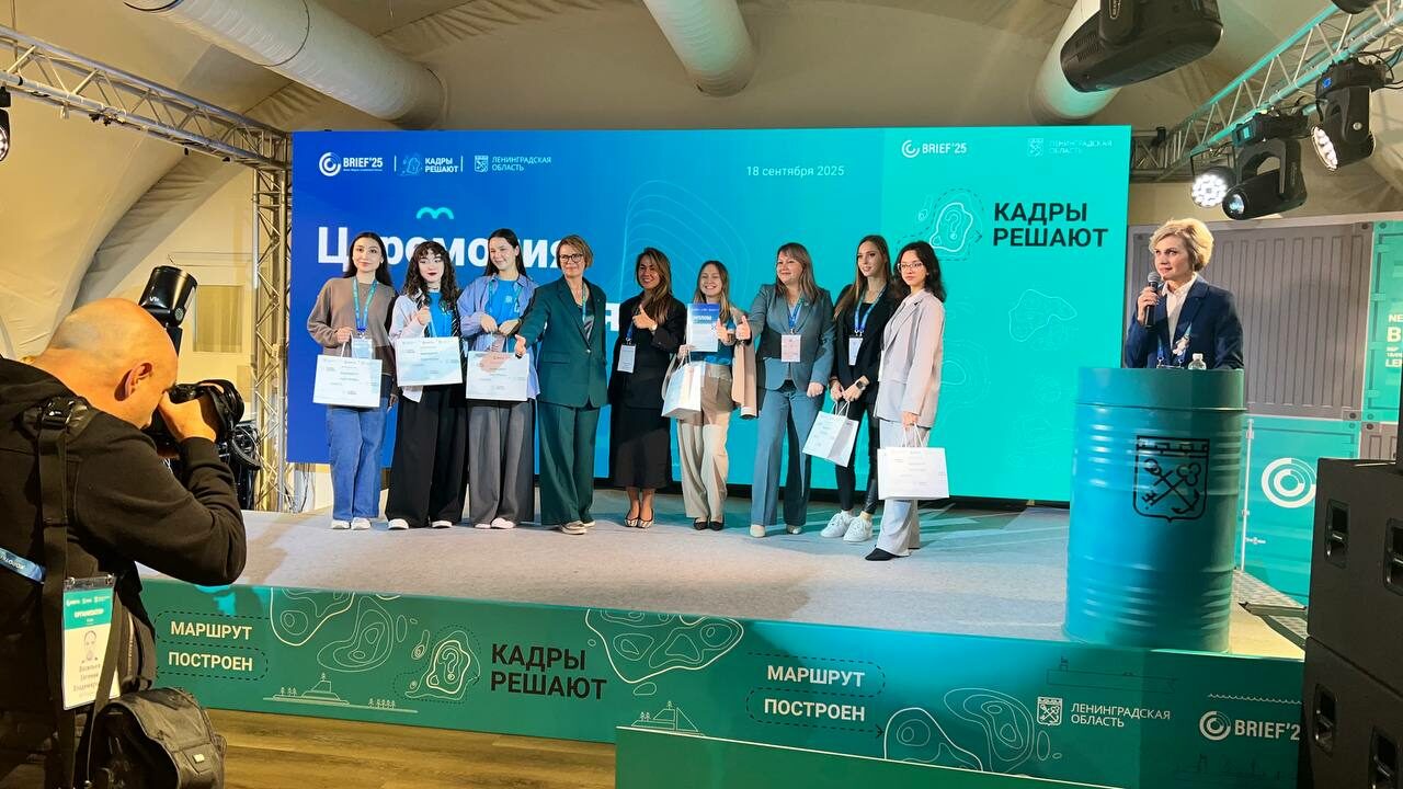 Молодежный трек завершился церемонией награждения, которую провела Анастасия Викторовна Михальченко, директор ГКУ «Агентство экономического развития Ленинградской области». Проекты трех команд, продемонстрировавшие креативность, практичность и высокий потенциал, были отмечены как лучшие. В составе команд победителей, занявших 1 и 2 места, были студенты СПбГЭУ: Елизавета Родникова и Валерия Клюева, группа БИ-2302; Алина Султонова, группа М-2204 и Виктория Абдулвалеева, группа БИ-2303.