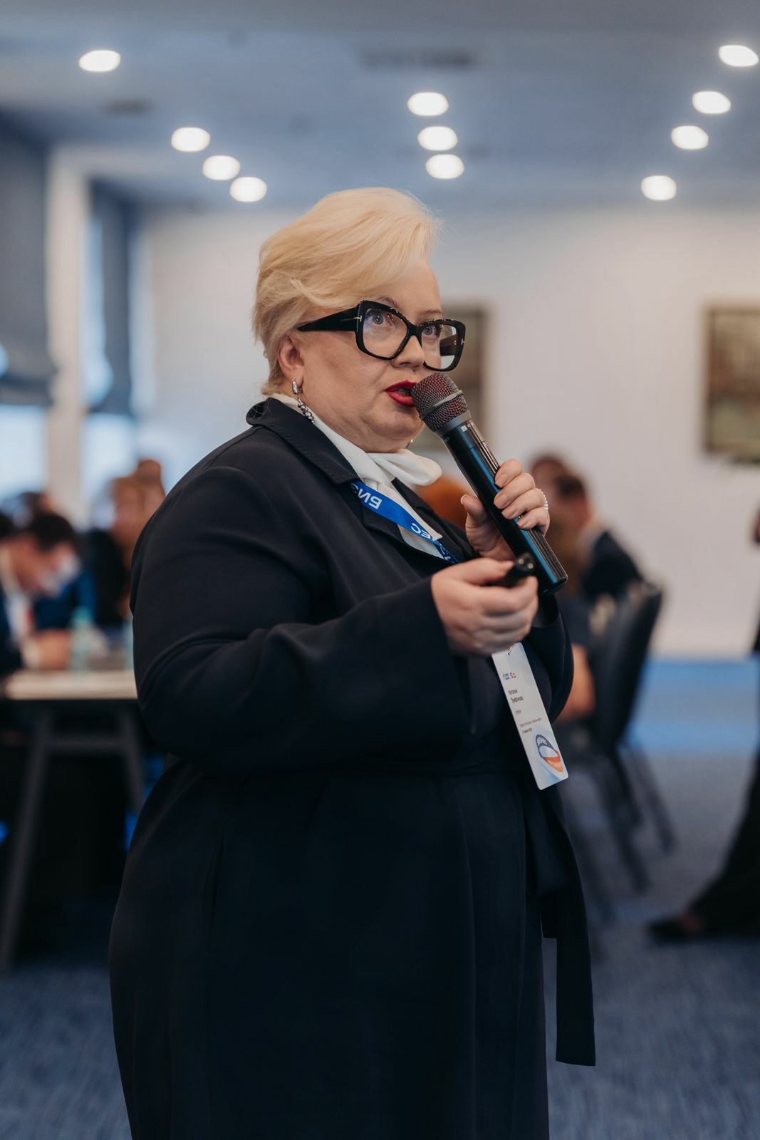 С докладом выступила Трифонова Н.В., заведующая кафедрой международного бизнеса. Она представила организационно-управленческую модель распределенного ЦКП. В своем выступлении Трифонова Н.В. подробно остановилась на формировании научной повестки на стыке фронтирного анализа и приоритетных задач квалифицированого заказчика, на формировании внутреннего рынка в рамках коллаборации и привлечении государственного финансирования. Отдельное внимание было уделено бизнес-моделям работы центров. Также была представлена ролевая архитектура проекта с распределением функций между университетами по уровням технологической готовности результатов.