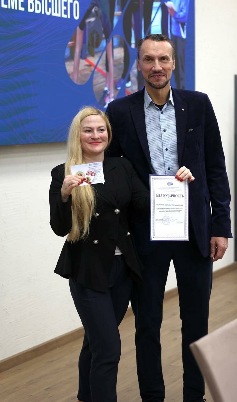 Особым и значимым событием церемонии открытия конференции стало торжественное вручение золотых знаков отличия Всероссийского физкультурно-спортивного комплекса «Готов к труду и обороне» (ГТО) олимпийским чемпионом Юрием Игоревичем Нестеровым. Доценту СПбГЭУ Наталье Александровне Рагозиной был вручен золотой знак отличия лично олимпийским чемпионом.
