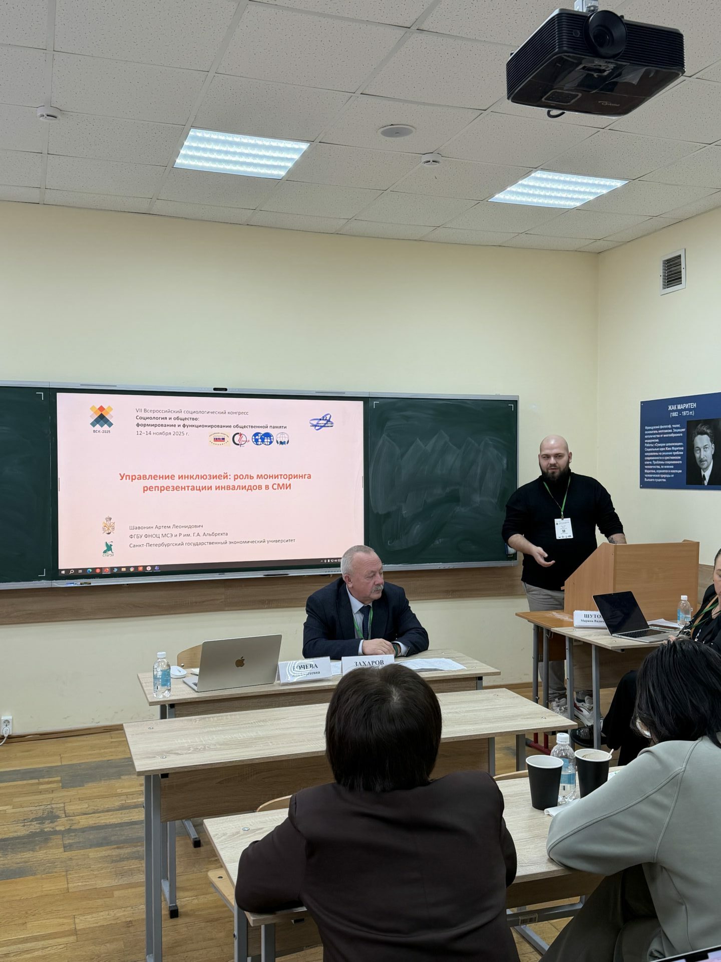 – Шавонин А.Л., аспирант, младший научный сотрудник отдела мониторинга и соблюдения прав инвалидов ФГБУ ФНОЦ МСЭ и Р им. Г.А. Альбрехта Минтруда России, выступил с докладом «Управление инклюзией: роль мониторинга репрезентации инвалидов в СМИ»;